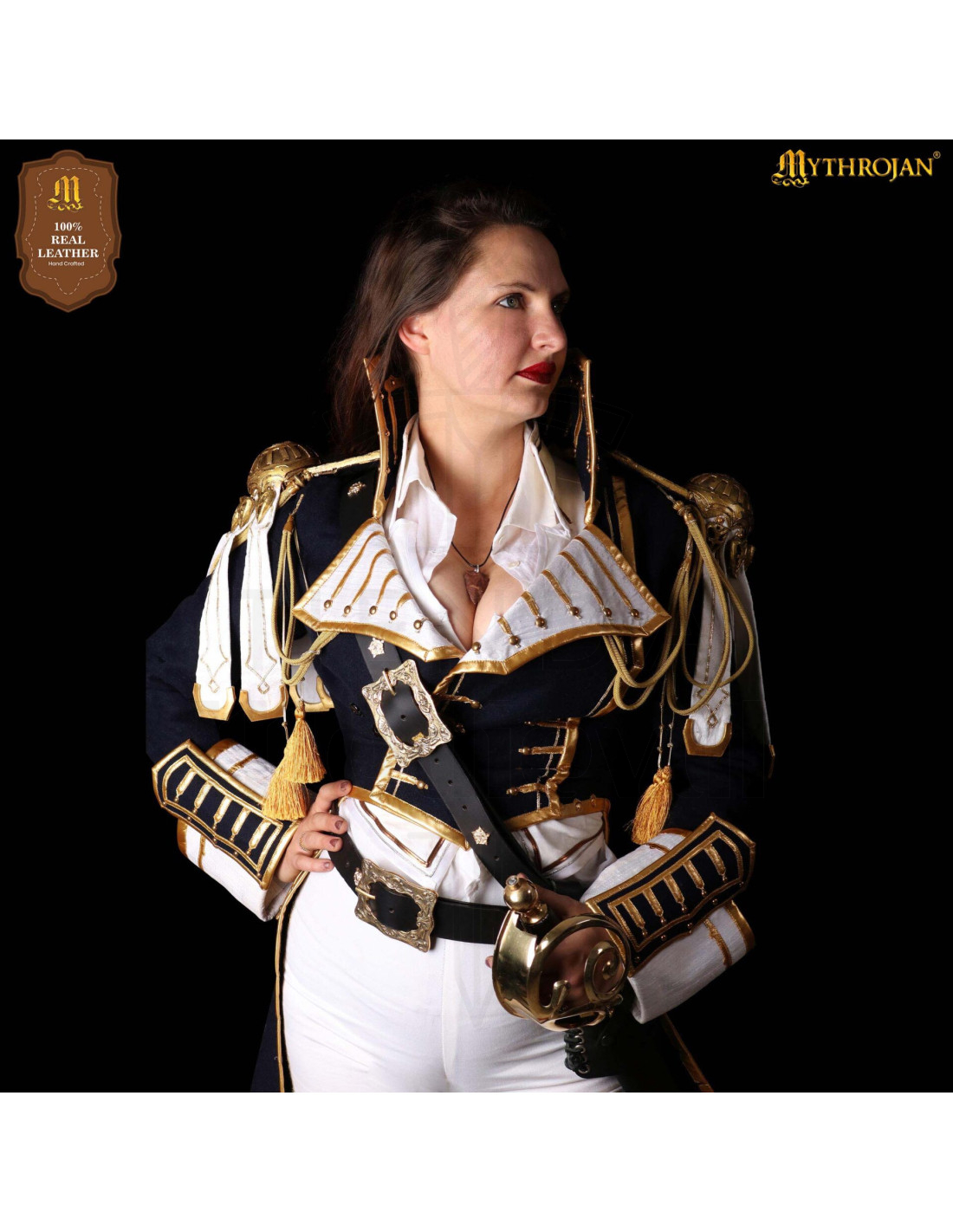 Der Renaissance Mittelalter Gürtel aus schwarzem Leder mit Messingschnalle verwandelt die Präsenz und bietet das Gleichgewicht zwischen historischer Präsenz und modernem Komfort. Das Finish aus dunklem Leder schafft eine klare Silhouette, die sich natürlich anpasst, während die goldene, rechteckige Schnalle mit gewellten Rändern und ornamentalem Relief einen Hauch von Authentizität verleiht, der dein Outfit mühelos hervorhebt.
