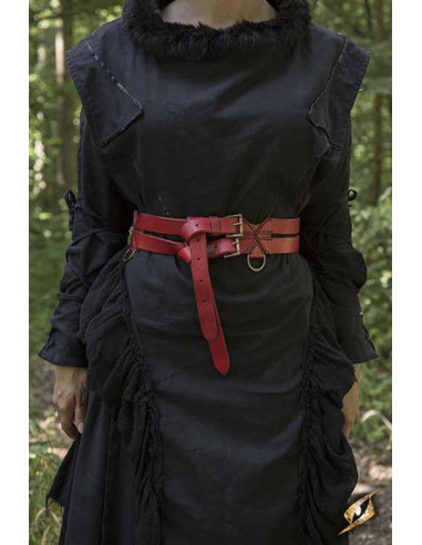 Einer der herausragenden Vorteile dieses Gürtels ist seine Funktionalität. Beide Klemmen sind mit Messing-D-Ringen ausgestattet, sodass Sie Taschen und andere Ausrüstung sicher und bequem befestigen oder aufhängen können. Ganz gleich, ob Sie auf einer Reenactment-Veranstaltung sind oder Ihrem Alltagslook einfach einen mittelalterlichen Touch verleihen möchten, dieser Gürtel bietet Ihnen die Vielseitigkeit, die Sie brauchen.