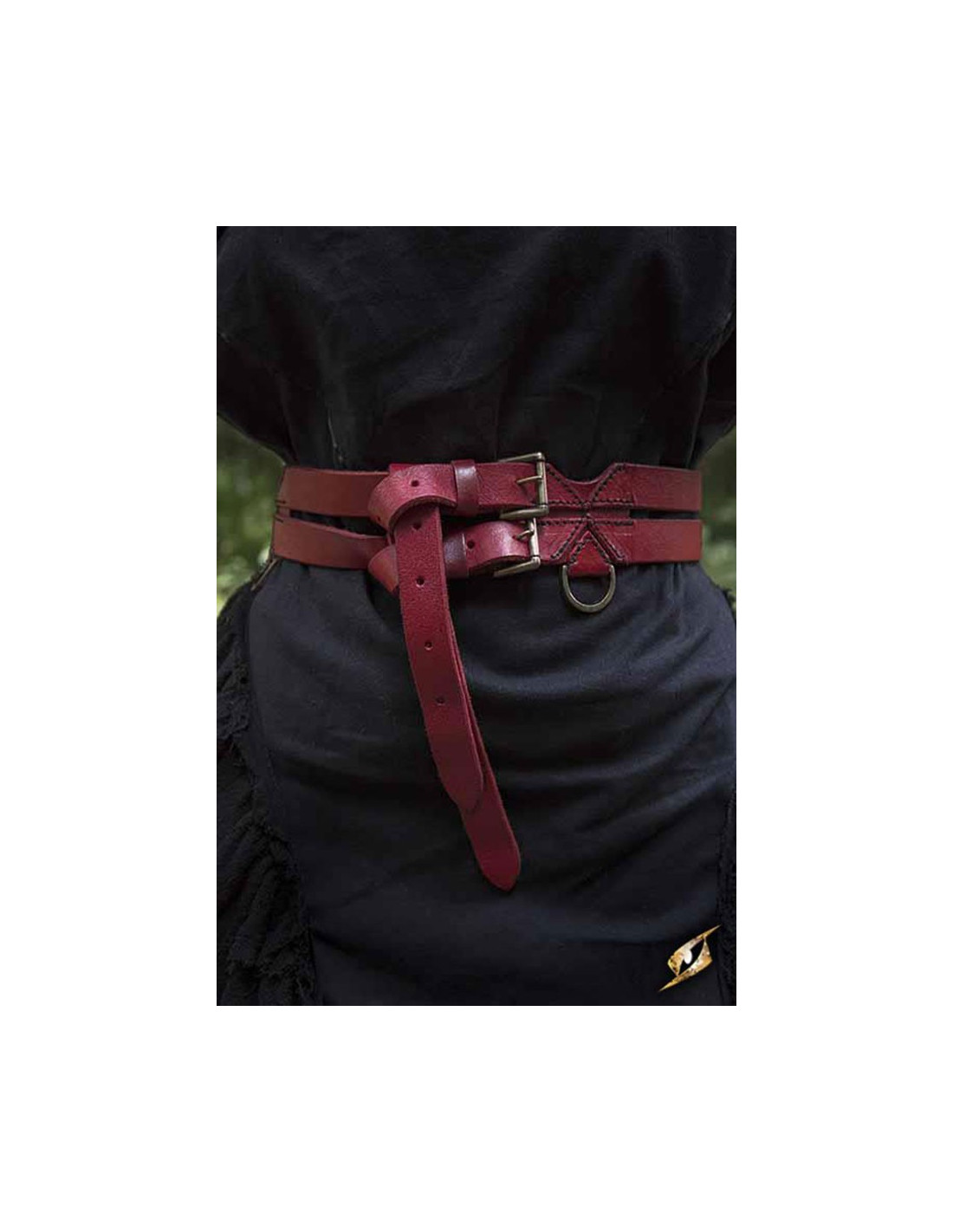 Neben seiner Funktionalität zeichnet sich der mittelalterliche Doppelgürtel Epic Armoury durch seinen Stil und seine Eleganz aus. Sein Design aus zwei in einem kunstvollen Muster zusammengenähten Riemen verleiht ihm einen einzigartigen und auffälligen Look. Einfache Ringe verleihen einen Hauch von Raffinesse, ohne die mittelalterliche Essenz zu verlieren.