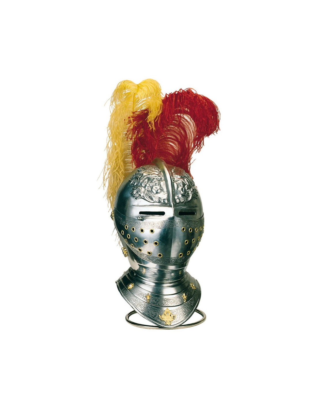 Der Helm ist das „Teil der Rüstung, das den Kopf bedeckt und verteidigt“. In den ersten mittelalterlichen Jahrhunderten diente zum Schutz des Kopfes ein einfacher Metallhelm mit konischer Form, ohne Visier und Halsschlagader, zu dem im 10. Jahrhundert der gerade Nasenfortsatz hinzugefügt wurde. Später kam das Visier hinzu, der bewegliche Teil und der wichtigste Teil des Helms oder Helms, der das Gesicht des Kriegers während des Kampfes bedecken sollte und angehoben wurde, wenn es notwendig war, Luft zu holen und die Gegenstände besser zu untersuchen . Im Mittelalter bestand es aus drei Teilen: