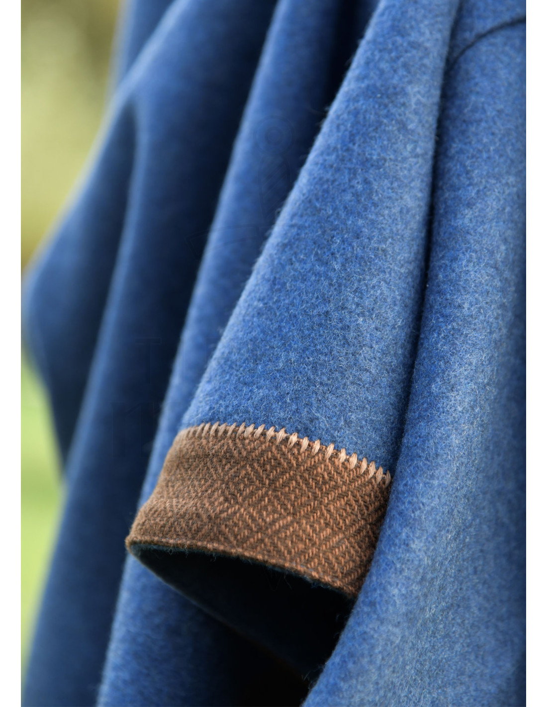 Das Vikinger Kleid Lykka Wolle Blau Braun Historisch ist inspiriert von archäologischen Funden und wird zu einem Kleidungsstück, das zum Leben gedacht ist, nicht nur zum Anschauen. Der integrierte Wollstoff bietet natürliche Wärme und einen eleganten Fall, der es Ihnen ermöglicht, sich geschmeidig zu bewegen, ohne die authentische Silhouette der Epoche zu verlieren.