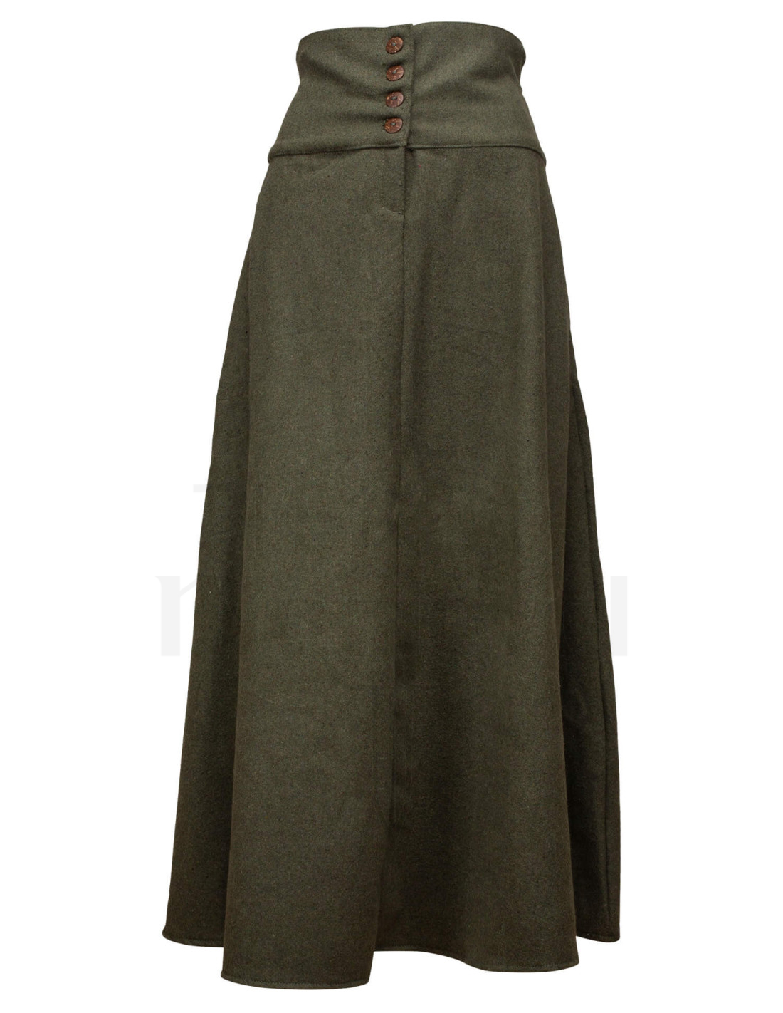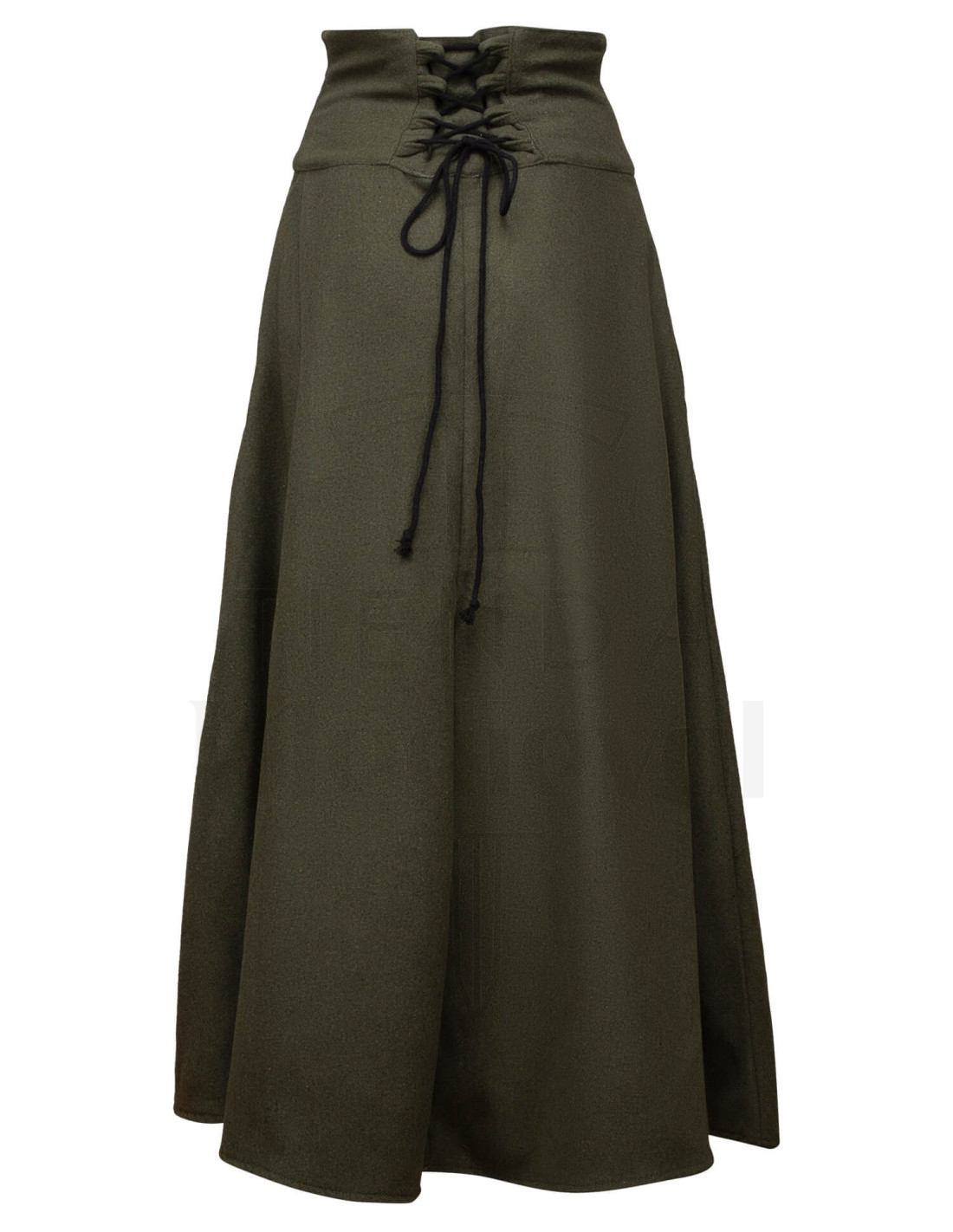 Suchen Sie nach einem Kleidungsstück, das Komfort, Stil und Vielseitigkeit für Ihre mittelalterlichen Abenteuer oder Cosplay-Events vereint? Dieser dunkelgrüne Wollrock bietet genau das und mehr. Inspiriert von eleganten Epoche-Designs betont sein eng anliegender Schnitt oben Ihre Figur, während der weite, fallende Rock einen beeindruckenden und bequemen Effekt schafft, perfekt für Bewegungen und lange Tage.