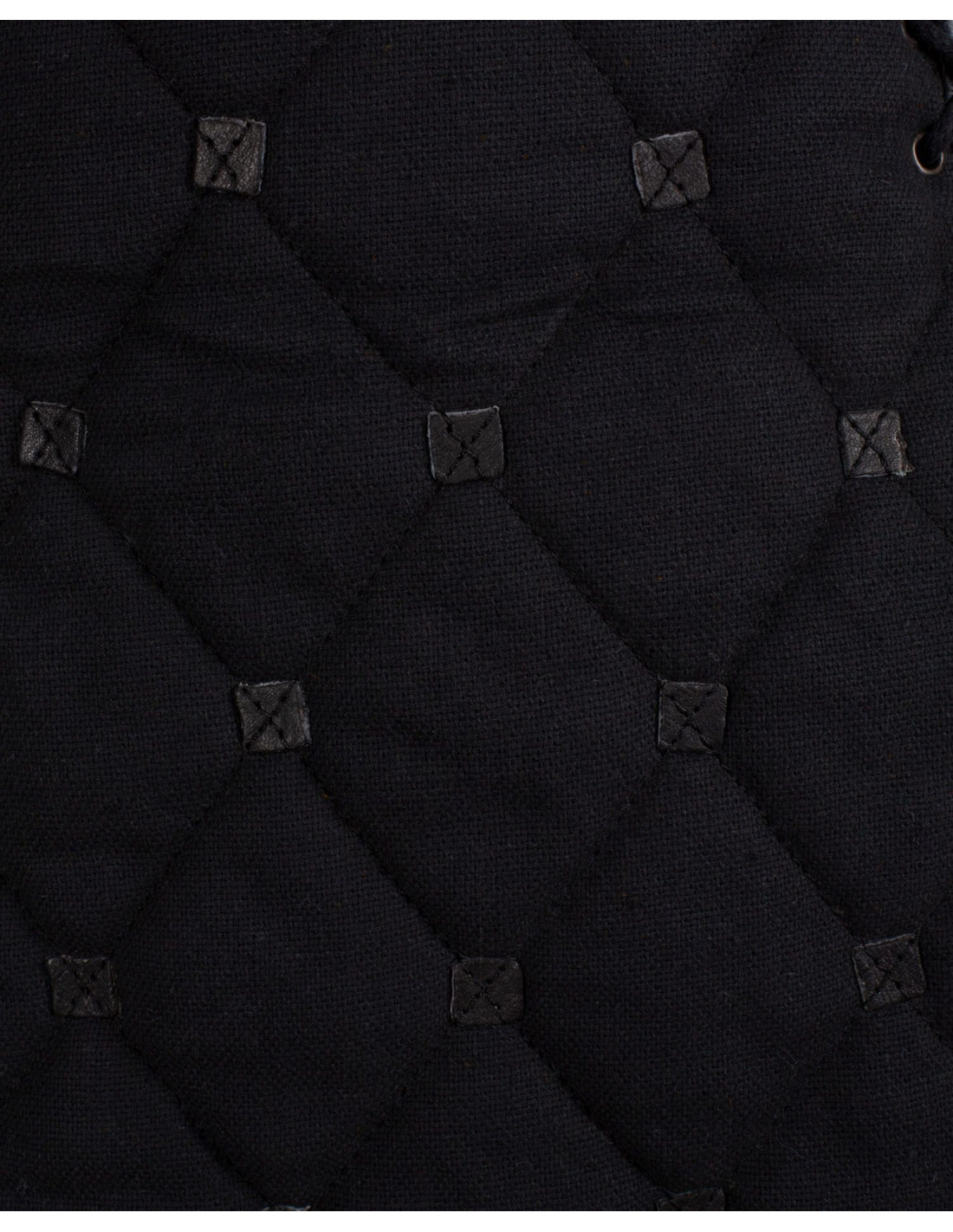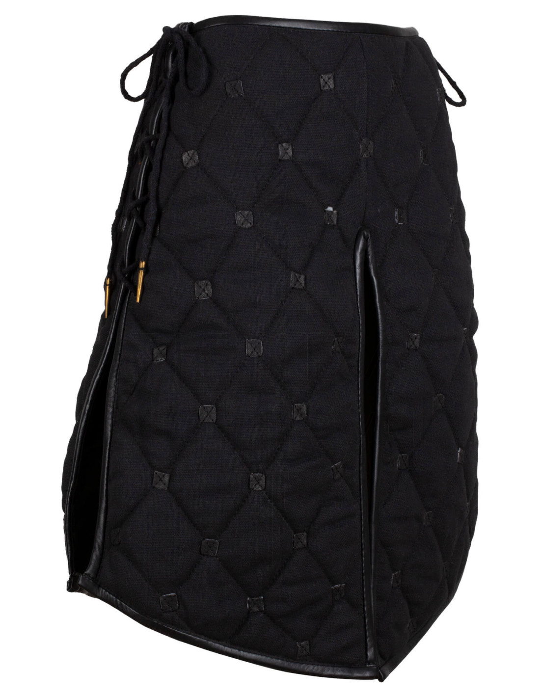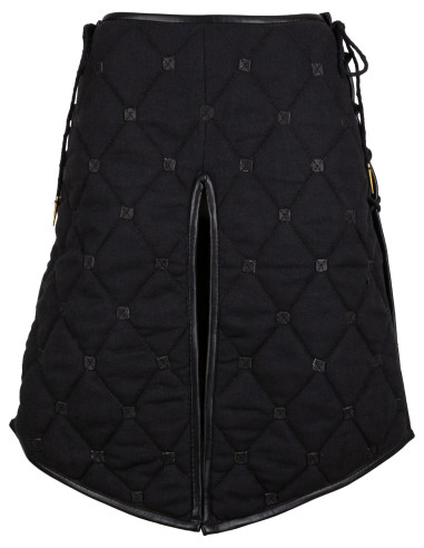 Entdecken Sie ein unverzichtbares Stück für den mittelalterlichen und abenteuerlichen Look mit diesem schwarzen Gambesón-Stilrock, entworfen für diejenigen, die sowohl Schutz als auch Stil schätzen. Hergestellt aus weicher 100% Baumwolle und mit Polyester gepolstert, bietet er Komfort und Langlebigkeit bei jedem Schritt, ideal für Ihre anspruchsvollsten Tage.