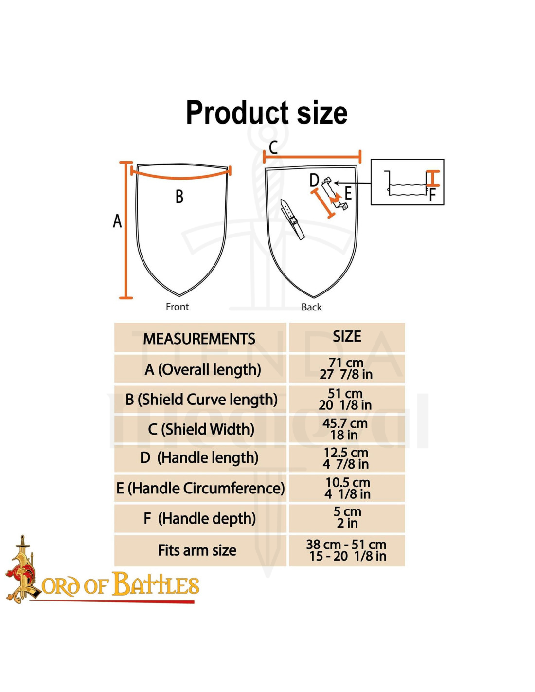 Sind Sie auf der Suche nach einem funktionalen mittelalterlichen Schild, um Ihren Outfits oder für Ihre historischen Nachstellungen einen Hauch von Authentizität zu verleihen? Suchen Sie nicht weiter, denn wir haben das perfekte Produkt für Sie. Wir präsentieren unseren funktionalen mittelalterlichen Schild, der in verschiedenen Größen hergestellt wird,...