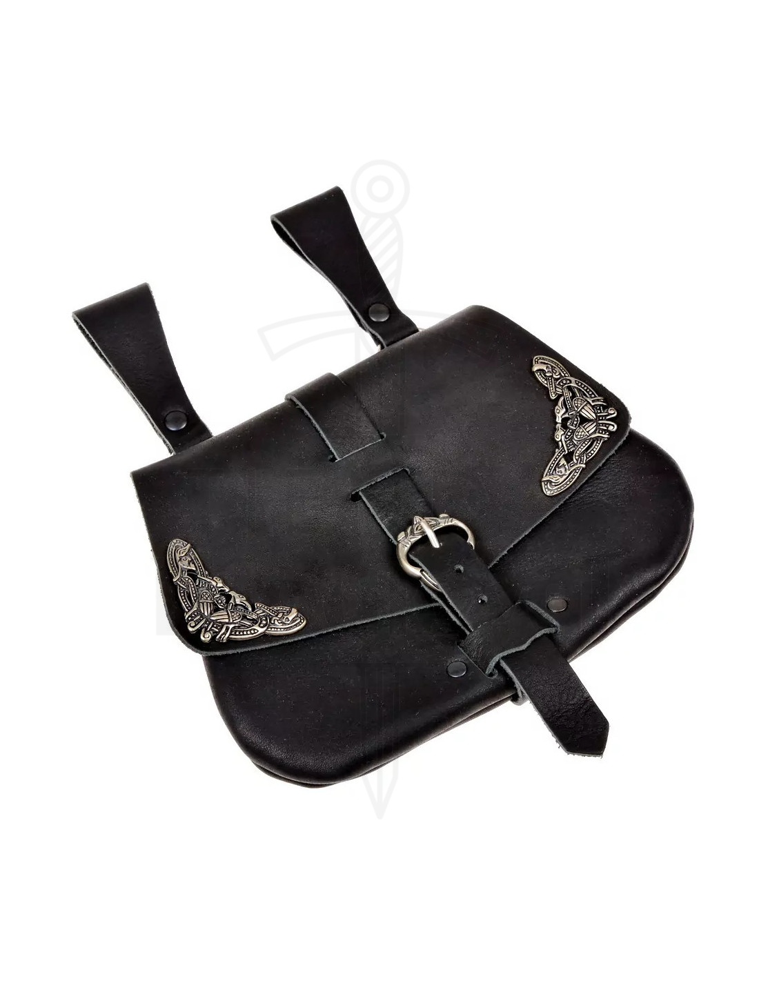 Diese frühmittelalterliche Gürteltasche ist in zwei eleganten Varianten erhältlich: schwarzes Leder mit silberner Schnalle oder braunes Leder mit bronzefarbener Schnalle und Beschlägen. So können Sie die Kombination wählen, die am besten zu Ihrem Stil und Ihren Vorlieben passt.