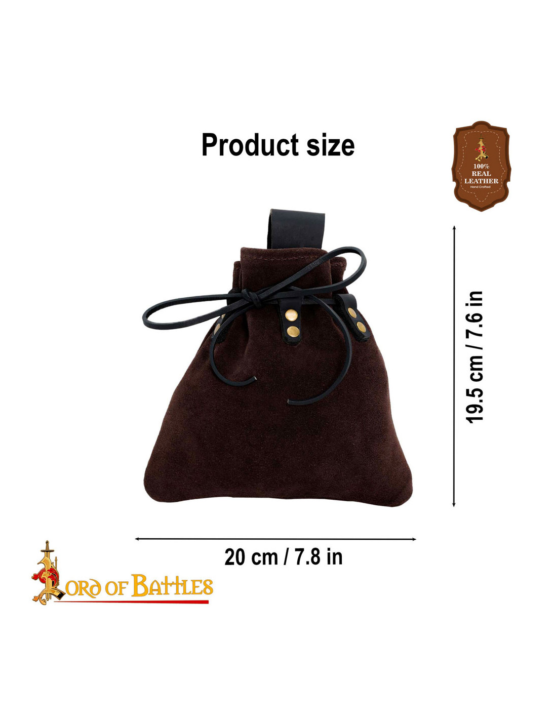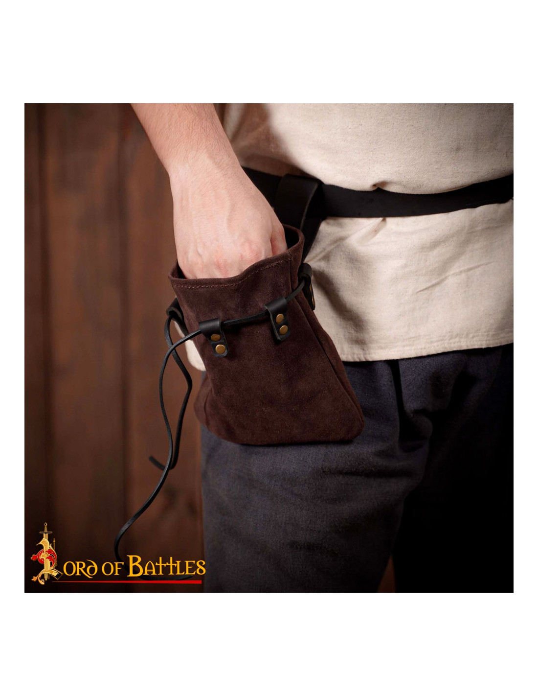 Die mittelalterliche Gürteltasche mit Kordelzugverschluss der renommierten Marke Lord of Battles ist ein handwerkliches Meisterwerk, handgefertigt aus echtem Wildleder. Sein sorgfältig ausgearbeitetes Design vereint Flexibilität und Stärke und macht es zu einem langlebigen Begleiter, der jedes andere Lederhandwerk übertrifft.