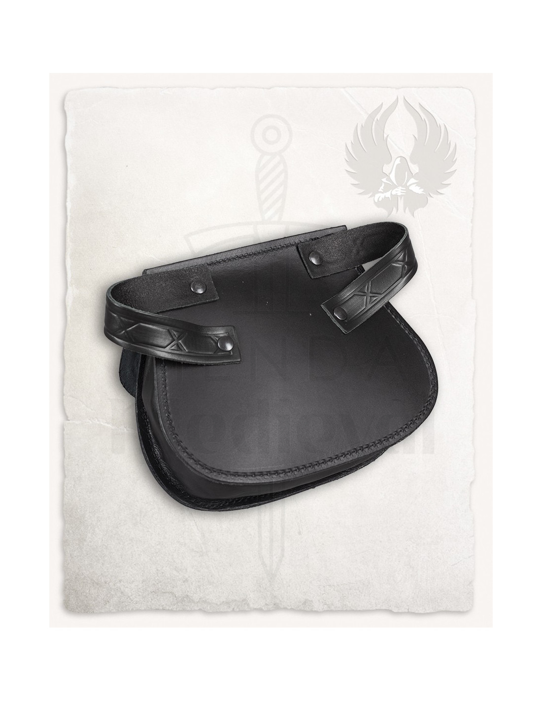Vollständig aus hochwertigem Leder gefertigt, hergestellt in der Werkstatt 'Fucina del Drago' aus italienischem Rindsleder aus der Toskana, garantiert sie Langlebigkeit und einen authentischen Touch. Das glatte, strapazierfähige Finish, zusammen mit Reliefmotiven und dekorativen Details an den Rändern, verleihen ihr einen unverwechselbaren und anspruchsvollen Charakter. Die Metall-Schnalle und der verstellbare Riemen machen sie einfach zu tragen und äußerst praktisch – ideal für Liebhaber mittelalterlicher Stile, Ritter- oder Cosplay-Events oder einfach für den Alltag mit einem Hauch von Abenteuer.