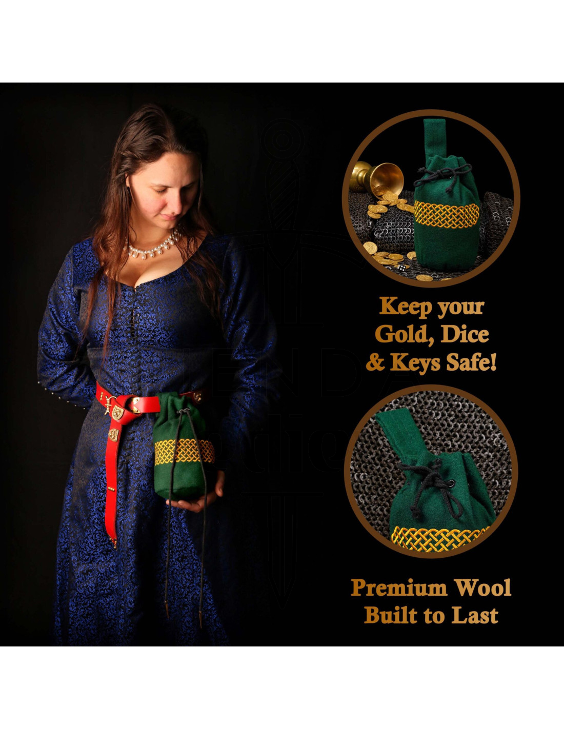 Bist du bereit, deinem Outfit mit einem edlen und robusten Akzent zu verleihen, der Tradition und Langlebigkeit vereint? Diese mittelalterliche Wolltasche mit Stickerei für den Gürtel in lebendigem Grün ist viel mehr als nur ein Accessoire – sie ist eine Aussage von Stil und Qualität!