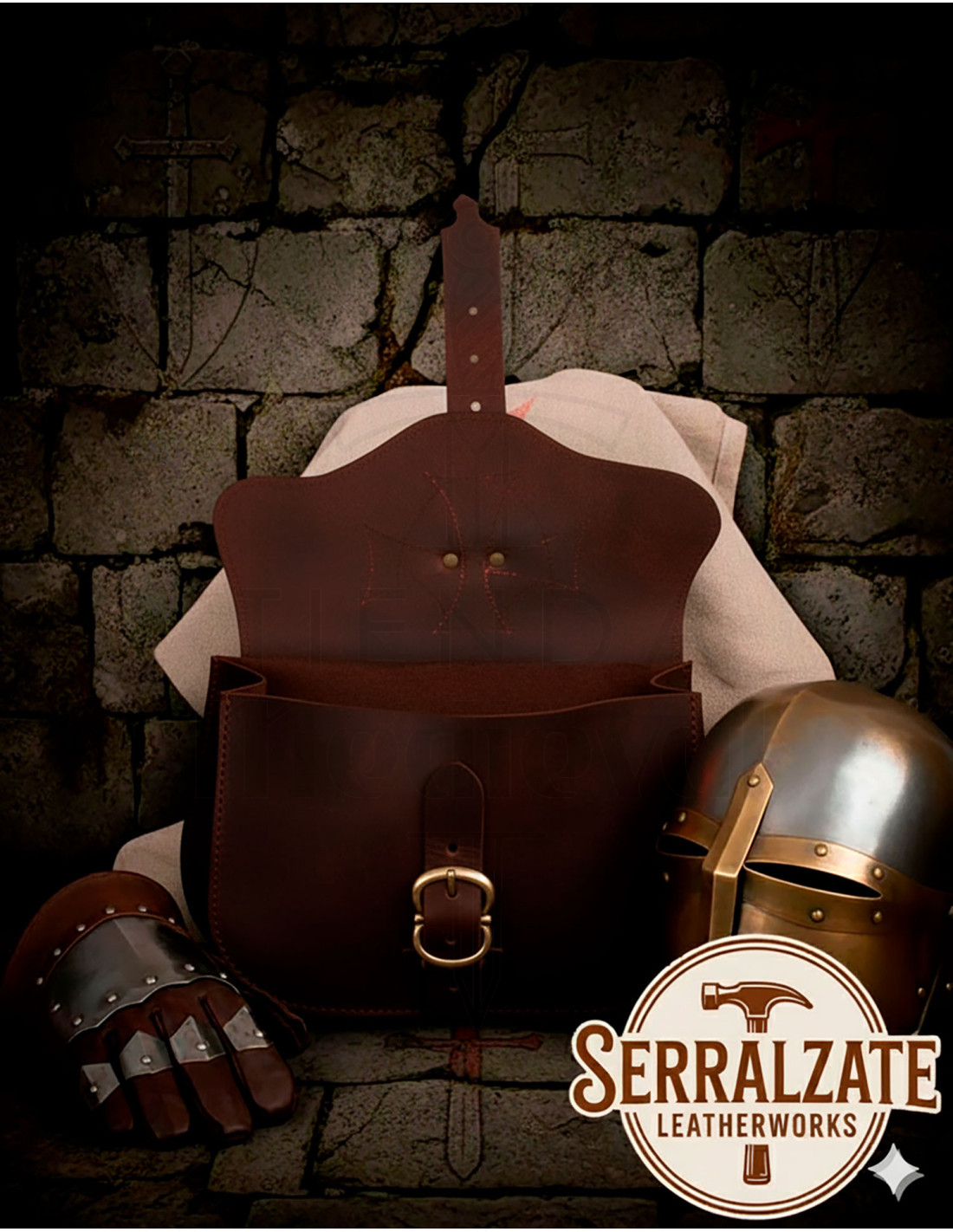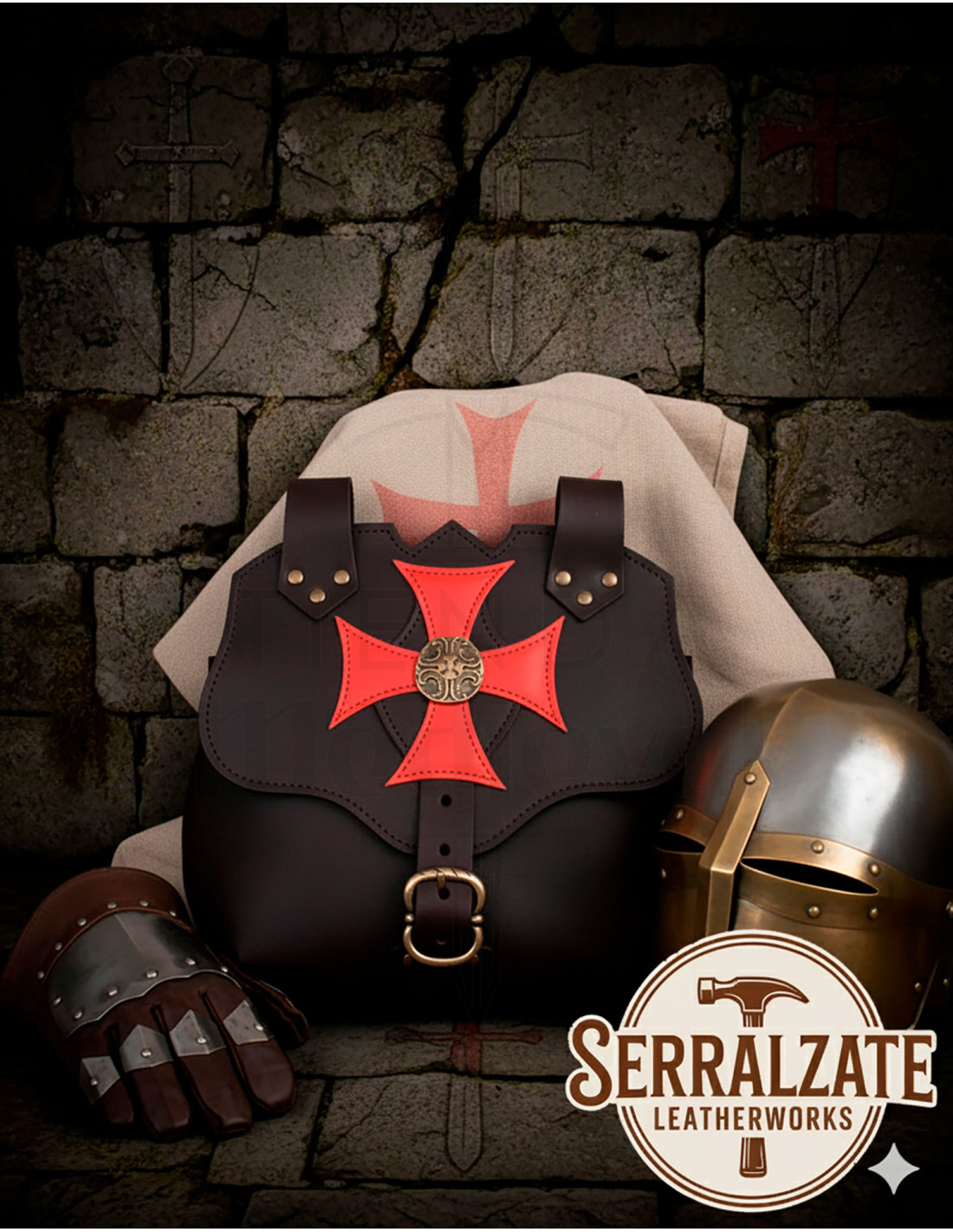 Entdecken Sie die dunkle braune Templer-Tasche Kreuz Paté, eine einzigartige Kreation von Serralzate LeatherWorks. Dieses elegante Accessoire verbindet hochwertiges Leder mit einem Wildleder-Finish und bietet ein attraktives und funktionales Design. Das spektakuläre rote Templer-Kreuz, das mit einem zentralen Metallornament hervorsticht, verleiht einen Hauch von Unterscheidung, der nicht unbemerkt bleibt.