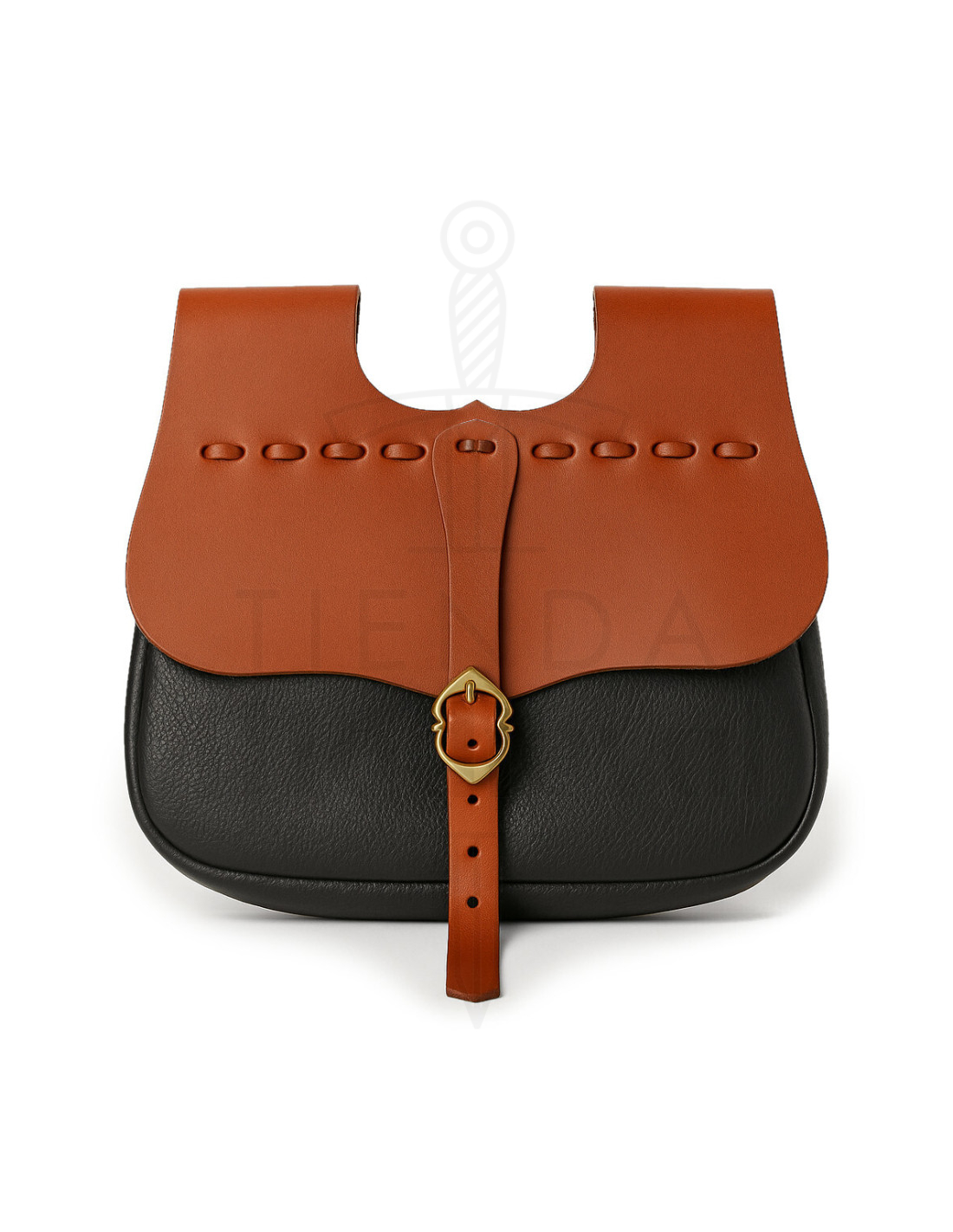 Dank ihrer praktischen Größe, etwa 21,5 cm breit und 22 cm hoch, mit intelligenten Fächern unter der geschwungenen, dekorierten Klappe mit Nähten und Perforationen, können Münzen, persönliche Gegenstände und kleine Elemente einfach organisiert werden. Das Design kombiniert Leder in Braun- und Schwarztönen – ein Stil, der Charakter und Langlebigkeit ausstrahlt, ideal für alle, die Qualität in jedem Detail schätzen.