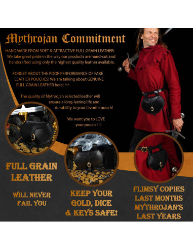 Wikinger-mittelalterliche Gürteltasche aus Leder in Schwarz