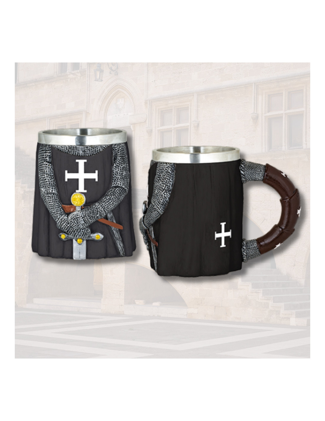 Der Griff, ingenieurtechnisch als Teil der Rüstung gestaltet, ist nicht nur ästhetisch ansprechend, sondern bietet auch einen komfortablen Halt, sodass jede Benutzung ein Vergnügen ist. Mit ihren dunklen Tönen und dem Kontrast des weißen Kreuzsymbols wird diese Tasse zu einem dekorativen Element, das alle Blicke auf sich zieht, sei es in deiner Küche oder in deinem Büro.