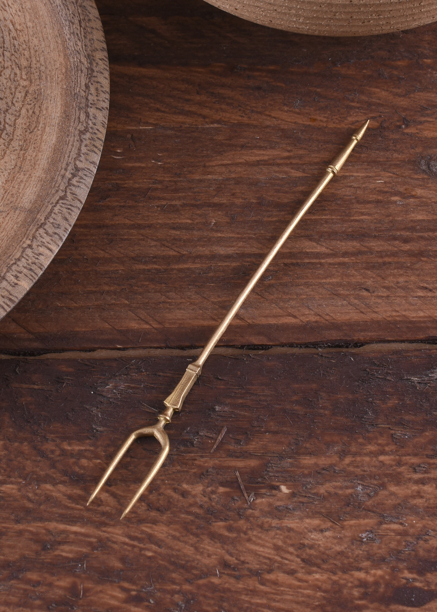 Zweizinkige römische Gabel aus Messing (13,5 cm.)
