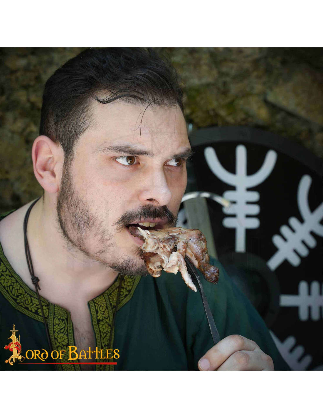 Sein rustikales Finish und die solide Verarbeitung sorgen dafür, dass dieses Utensil dem täglichen Gebrauch standhält – sei es beim Grillen, Lagerfeuer oder in nordisch inspirierten Küchen. Ideal für alle, die das Erbe der Wikinger-Krieger schätzen und ein Utensil suchen, das Geschichte, Haltbarkeit und Stil bei jedem Gebrauch vereint.