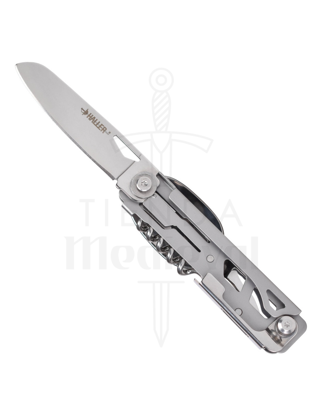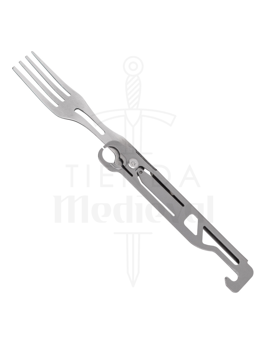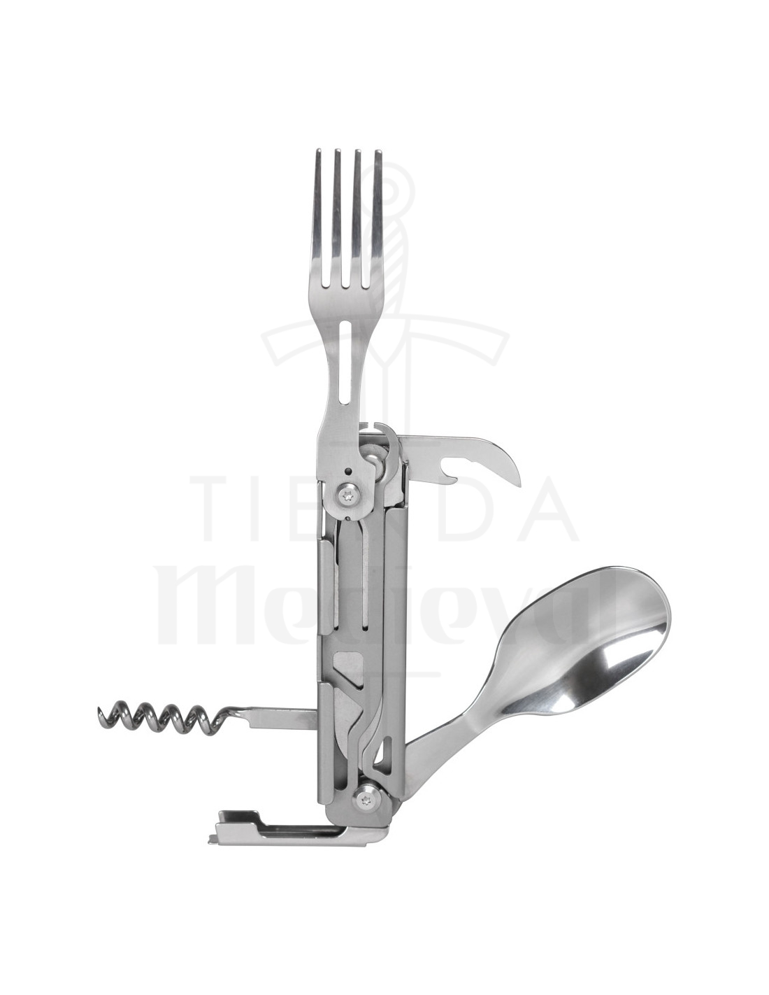 - Enthält verschiedene Werkzeuge: Zusätzlich zur Klinge verfügt es über eine Gabel, einen Löffel, einen Korkenzieher, einen Dosenöffner und einen Flaschenöffner, alles in einem kompakten Design.