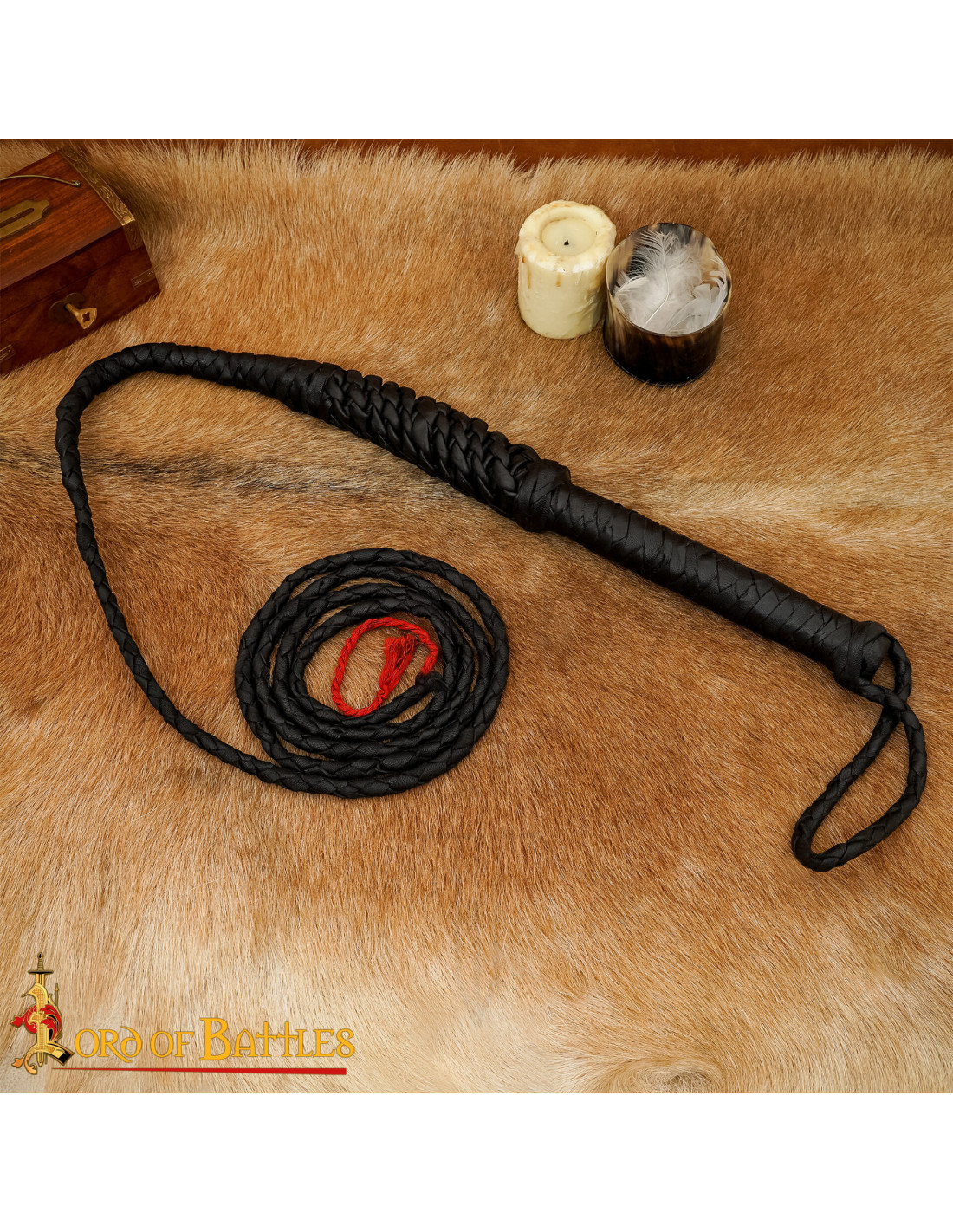 Wenn Sie eine mittelalterliche Peitsche aus handgeflochtenem schwarzem Leder (242 cm) kaufen möchten, wählen Sie ein Stück, das sowohl als Bühnenrequisite als auch als Kostüm-Accessoire für historische oder Fantasy-Charaktere geeignet ist. Das Design passt perfekt zu mittelalterlichen Settings oder Fantasy-Welten und verleiht Autorität und Realismus bei der Darstellung.