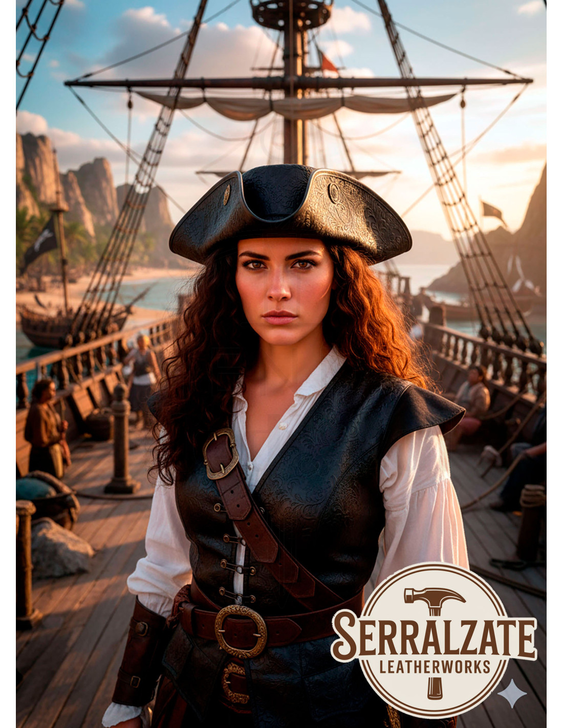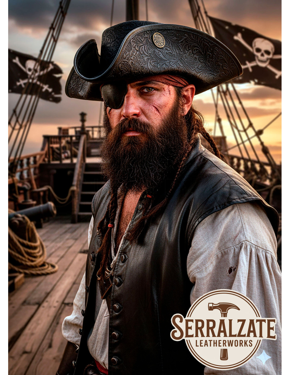 Stellen Sie sich vor, Sie befinden sich in der Zeit der Korsaren und der Marine des 18. Jahrhunderts mit unserem exklusiven Tricorn-Hut. Dieses Design, das die Kleidung der damaligen Zeit revolutionierte, indem es die breitkrempigen Hüte ersetzte, wurde zu einem Symbol für Status und Funktionalität auf hoher See und an Land. Jedes Stück ist eine authentische Nachbildung der Geschichte, ideal für historische Nachstellungen, Theater oder für diejenigen, die ein Accessoire mit einzigartigem Charakter suchen.