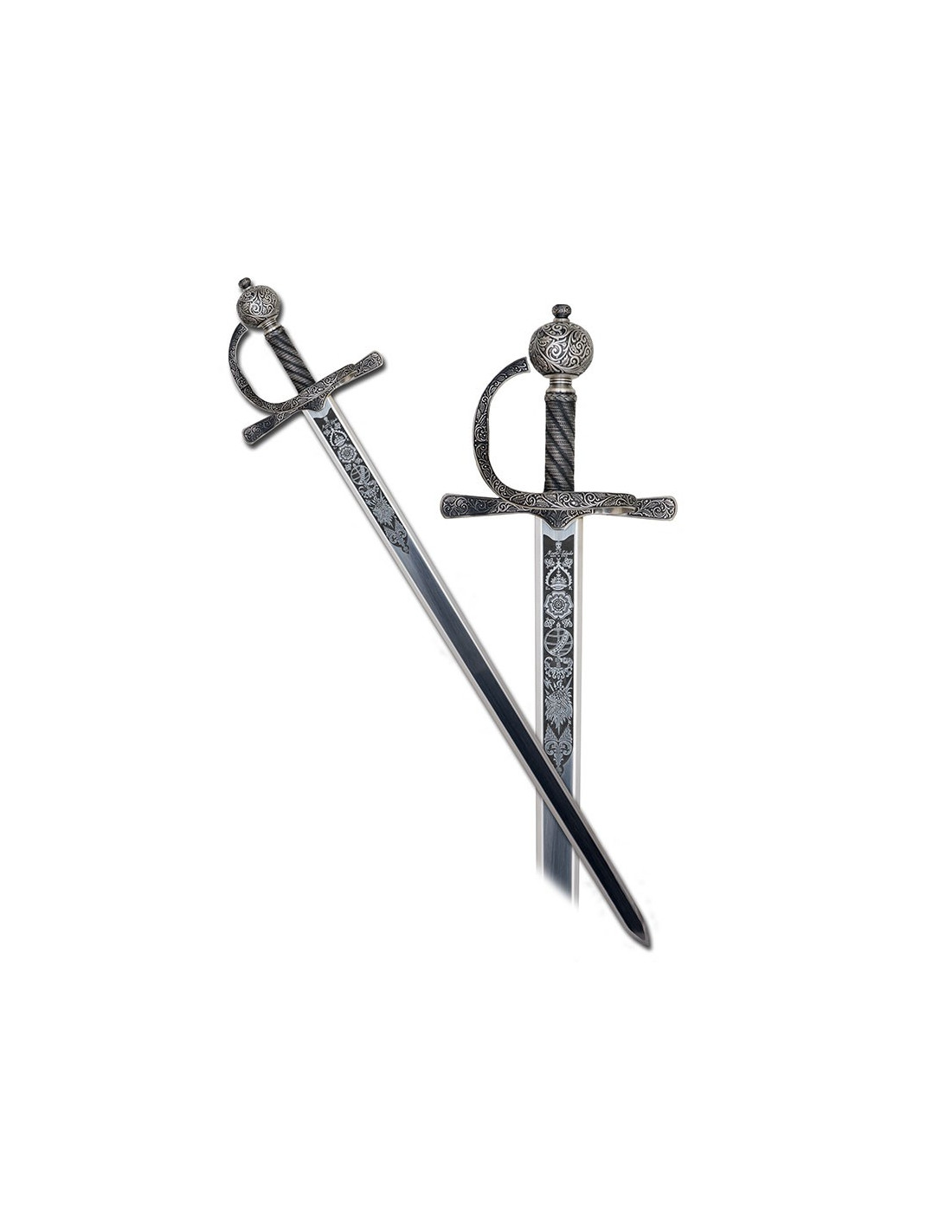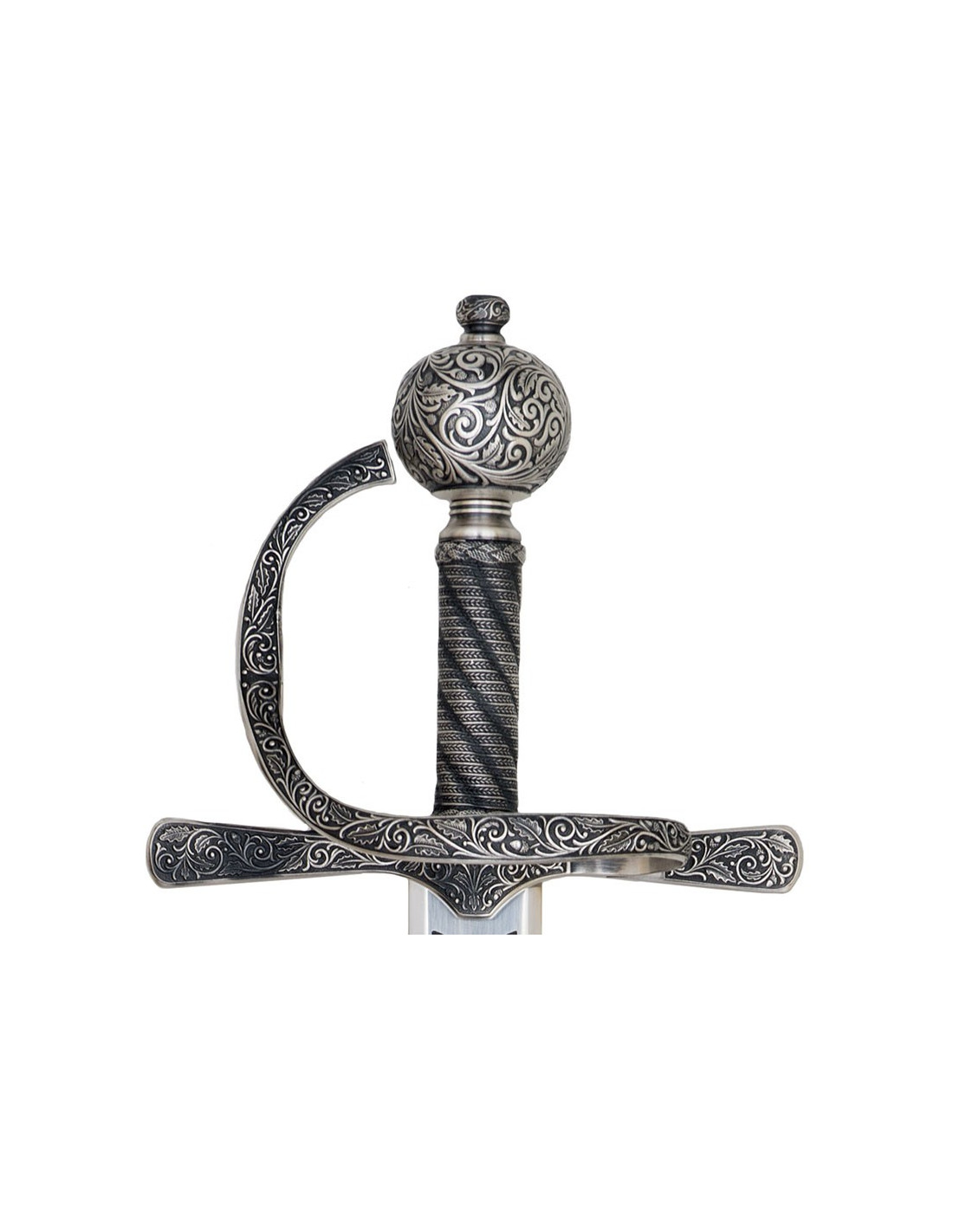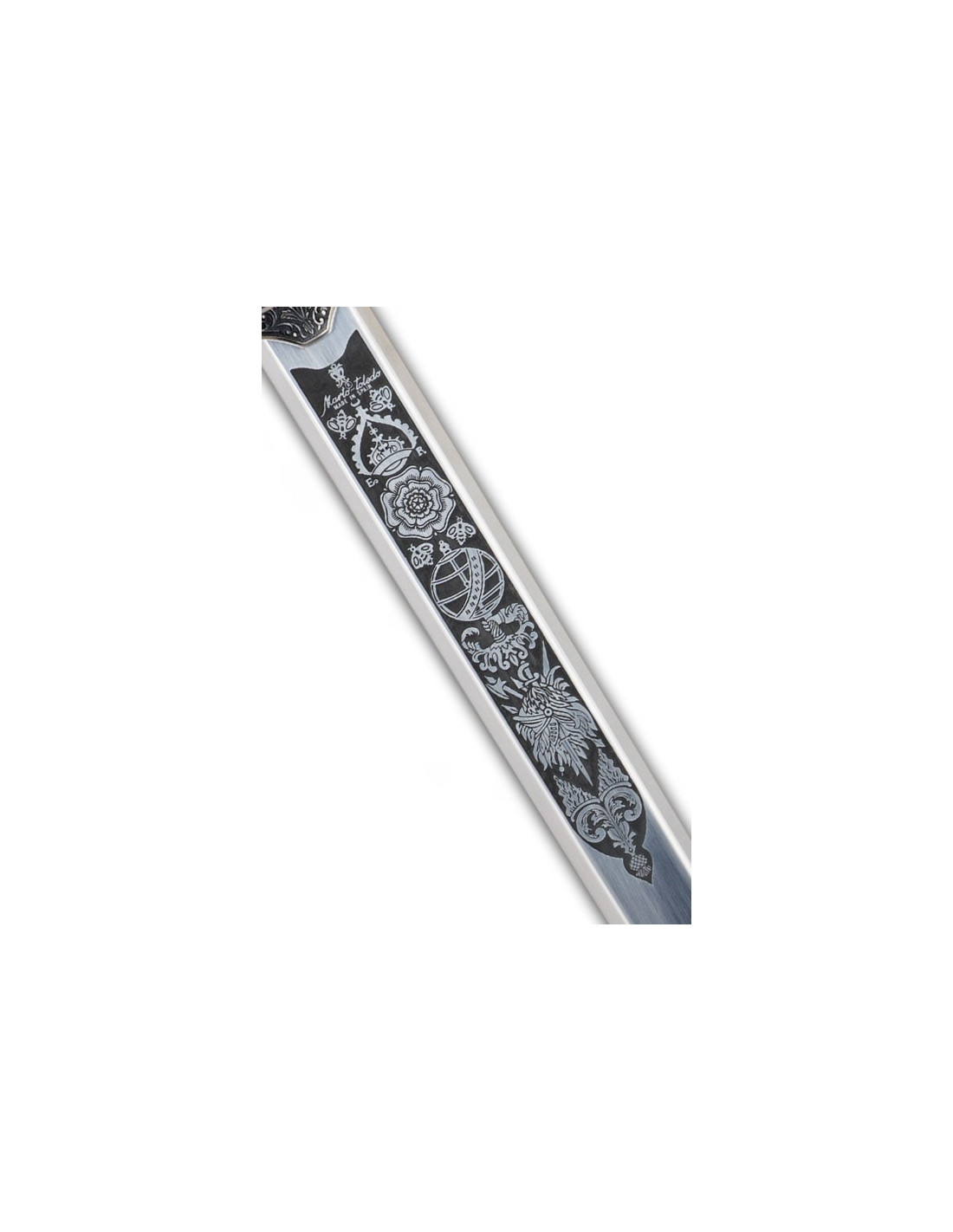 Dieses Schwert zeichnet sich durch sein tadelloses Design aus, mit einem runden Knauf, der passend zum Handschutz und zum Handschutz verziert ist. Darüber hinaus verfügt die Edelstahlklinge über eine tiefe Gravur, die ihr ein noch eindrucksvolleres Aussehen verleiht.