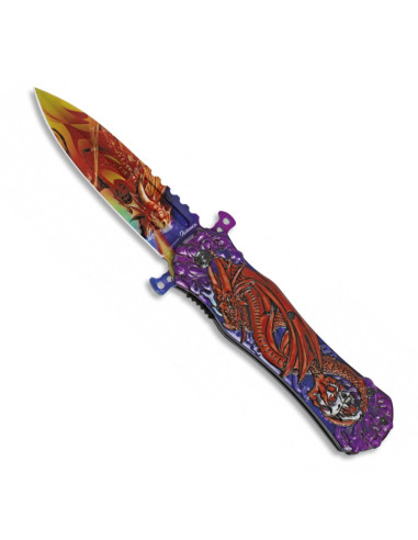 - Dragon Fantasy-Design: Das Dragon Fantasy-Modell ist ein Fenster in eine Fantasiewelt. Die 9 cm lange Klinge aus rostfreiem Stahl mit 3D-Prägung zeigt ein kompliziertes Drachendesign, das Sie in Länder voller Wunder und Geheimnisse entführt.