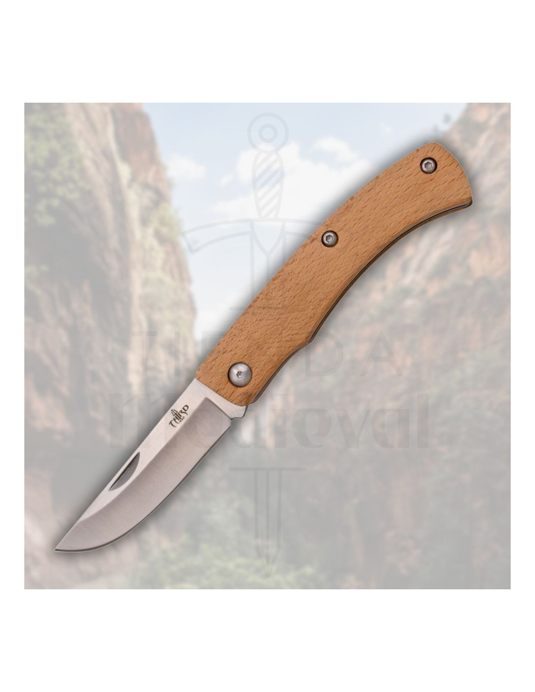 Das 4-Stufen-Ratschen-System sorgt für eine schrittweise und feste Öffnung, die mehr Kontrolle und Sicherheit in jeder Position bietet, während der Buchenholzgriff einen komfortablen und ergonomischen Halt bietet, der eine einfache und zuverlässige Handhabung ermöglicht. Mit einer Gesamtlänge von 20,3 cm und einem Gewicht von 125 Gramm ist dieses Messer bequem zu tragen und zu handhaben und passt sich einer Vielzahl von Situationen an.