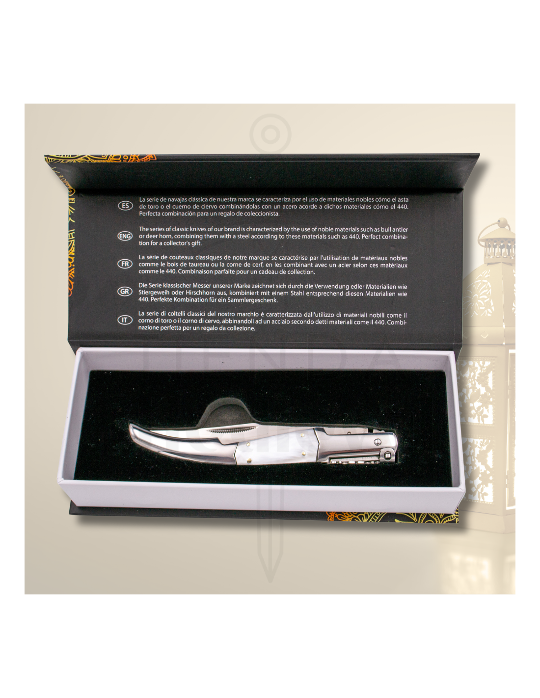 Es wird in einer Präsentationsbox geliefert, ideal für Sammler oder als besonderes Geschenk. Ein Messer, das Tradition, Stil und Funktionalität in jedem Detail vereint.