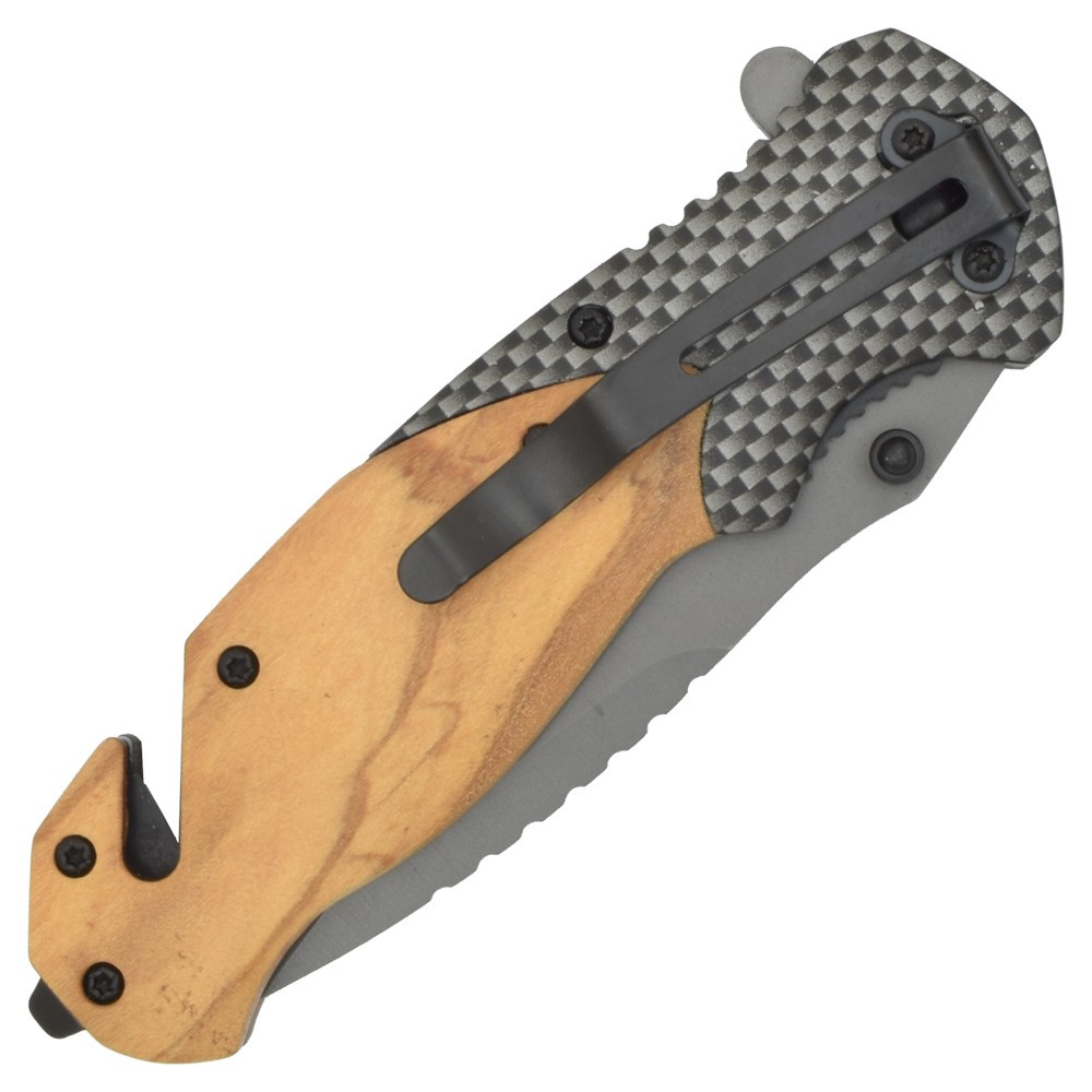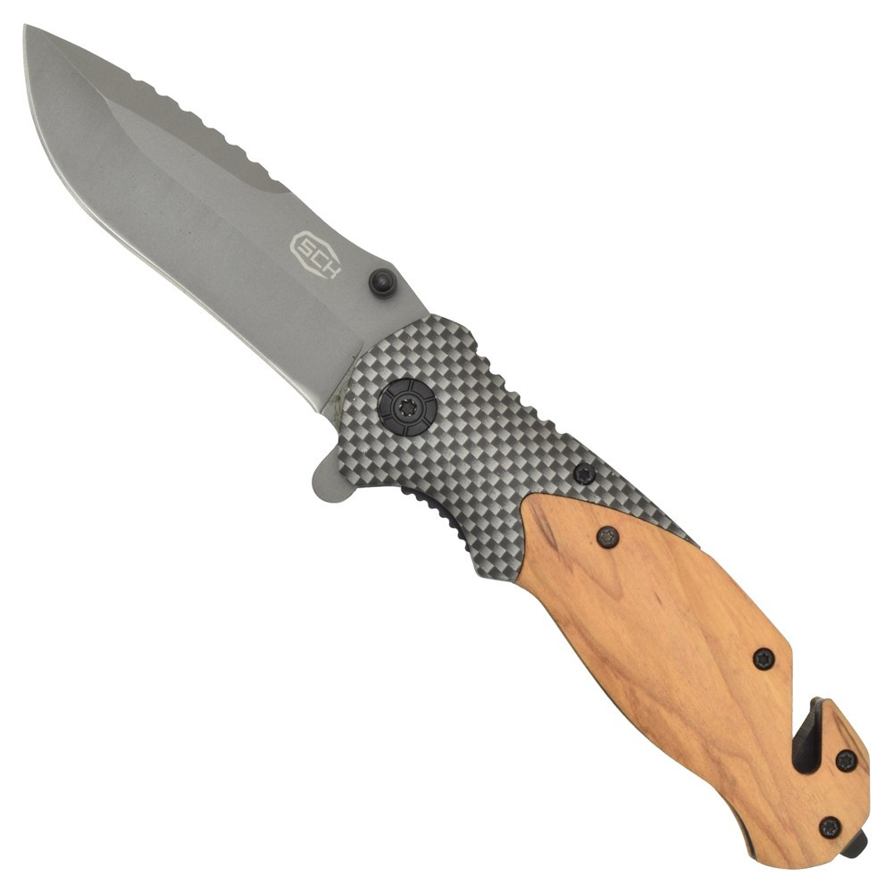 Was dieses SCK-Messer wirklich auszeichnet, ist seine Rettungsfunktion. Es umfasst einen Gurtschneider, mit dem Sie in Notsituationen eingeklemmte Personen schnell befreien können, und einen Glasbrecher, mit dem Sie Fensterscheiben mühelos einschlagen können, was bei Autounfällen oder anderen Situationen, in denen Zeit von entscheidender Bedeutung ist, von entscheidender Bedeutung sein kann.