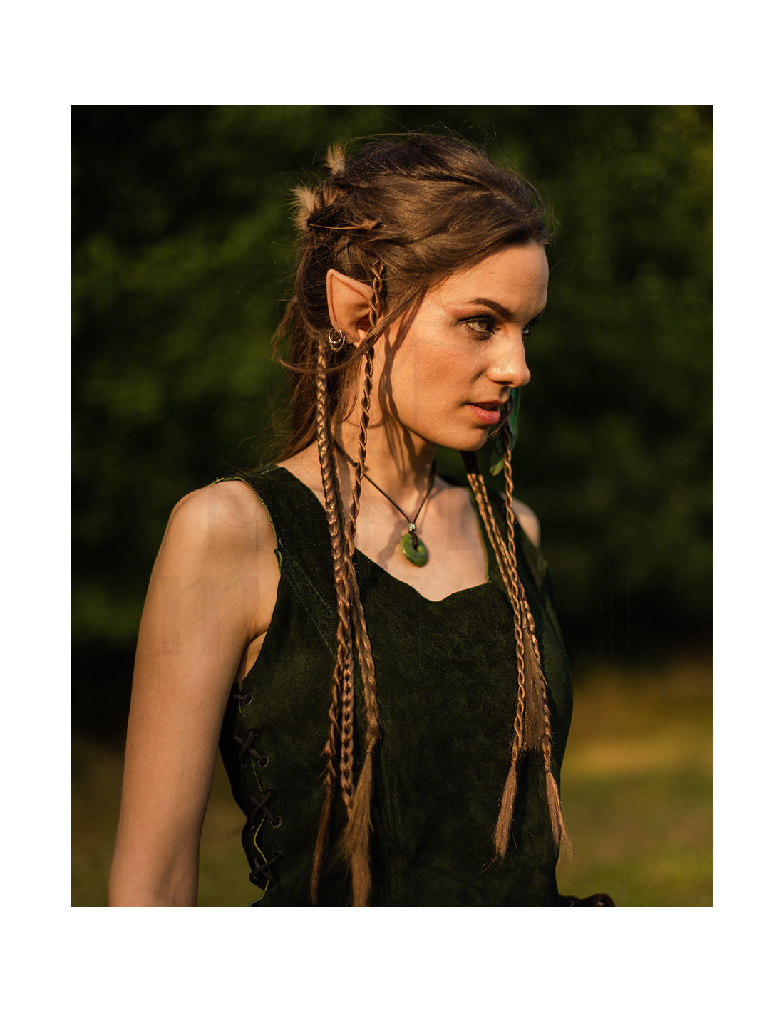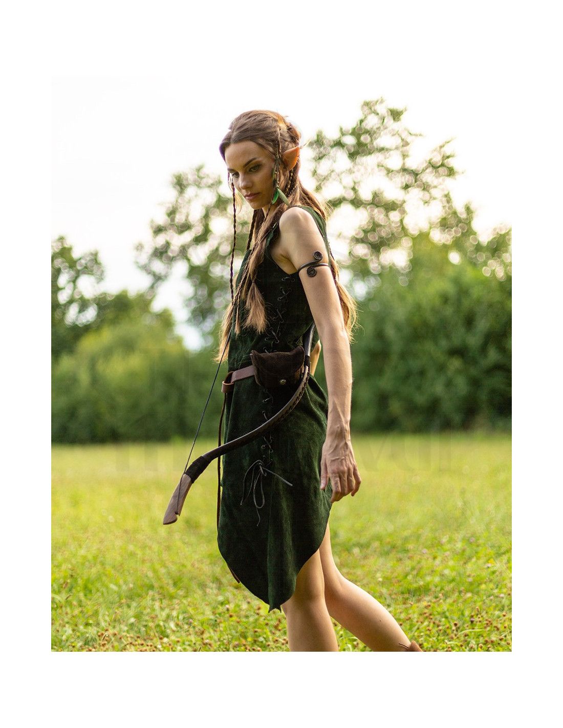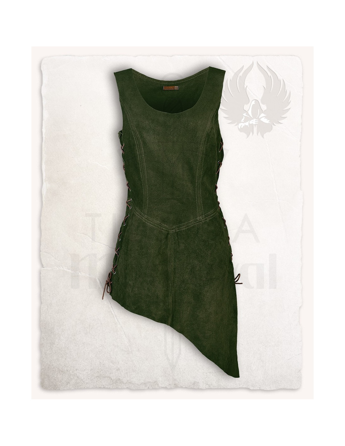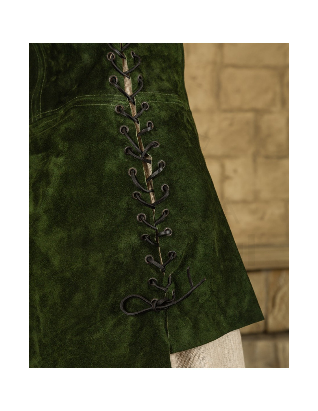 Begeben Sie sich auf eine magische Reise mit dem mittelalterlichen Wappenrock aus Wildleder von Lunette in einem bezaubernden Grünton! Dieser Wappenrock ist eine Neuinterpretation des „Lucy“-Mieders und nicht nur ein Kleidungsstück, sondern ein Stil-Statement, das Sie in die Eleganz der Elfen entführt. Entdecken Sie die Eigenschaften, die das Modell Lunette zur perfekten Wahl für alle machen, die Magie in jedem Detail suchen: