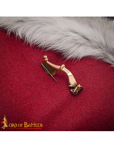 Die Römische Fibula der Jahrhunderte I-II aus patiniertem Bronze rekreiert treu das Accessoire, das während des 1. und 2. Jahrhunderts n. Chr. Mäntel, Tuniken und Identitäten hielt, und bietet eine authentische Präsenz, die jedes historische Outfit oder jede Sammlervitrine bereichert. Durch die traditionelle Wachsausschmelztechnik gegossen, bewahrt jede Kurve und Verzierungen die Feinheit und den Charakter der Originalstücke, was sich in einer visuellen Ausführung niederschlägt, die aus der Nähe und aus der Ferne überzeugt.