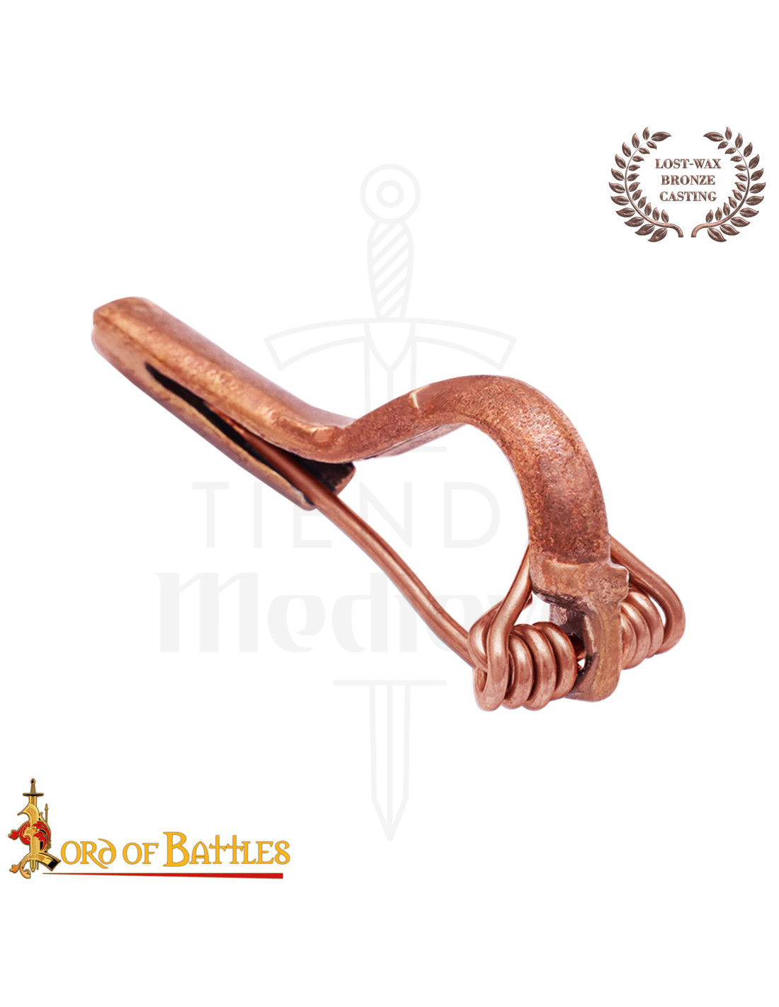 Der untere Mechanismus mit Feder und der Verschluss-Haken bietet eine einfache Öffnung und Befestigung, die praktisch ist, um sie über dichte Stoffe wie Tunikas oder Sagums zu platzieren, und um die Position während der Aktion zu halten. Der Bronzenadel bietet Zuverlässigkeit im täglichen Gebrauch oder bei anspruchsvollen historischen Nachstellungen.