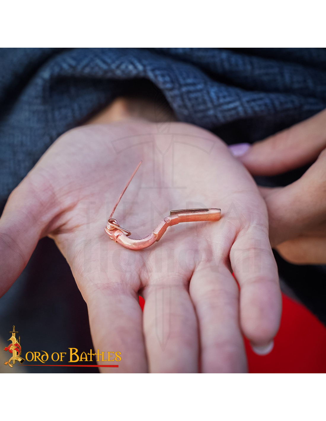Dieses Stück belebt diese praktische und stolze Geste, indem es einen Verschluss bietet, der sich nicht der Bewegung, langen Märschen oder schweren Umhängen beugt. Das geneigte Design, das von Funden aus dem 3. Jahrhundert stammt, sichert den Stoff, ohne zu rutschen, was es zur perfekten Wahl für diejenigen macht, die Authentizität und Leistung in historischer Kleidung suchen.
