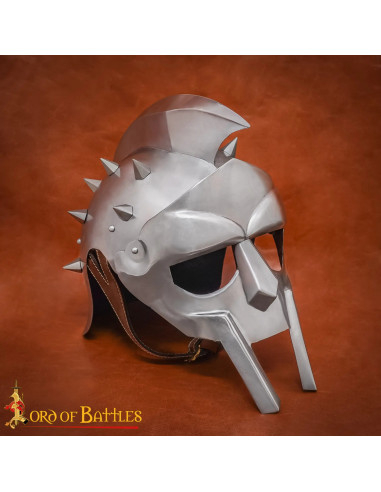 Möchten Sie einen Helm, der in jedem Detail Macht und Größe widerspiegelt? Dieser römische Helm des Gladiators Maximus mit Stacheln (Kaliber 18) ist inspiriert von den legendären Schlachten der Antike und des Kinos und verleiht bei Paraden, Veranstaltungen, Nachstellungen oder als Sammlerstück eine imposante Präsenz. Sein polierter Stahlfinish und die robuste Mähne rufen das Bild des berühmten Maximus „Der Spanier“ hervor und vereinen Autorität mit unverwechselbarem Stil.