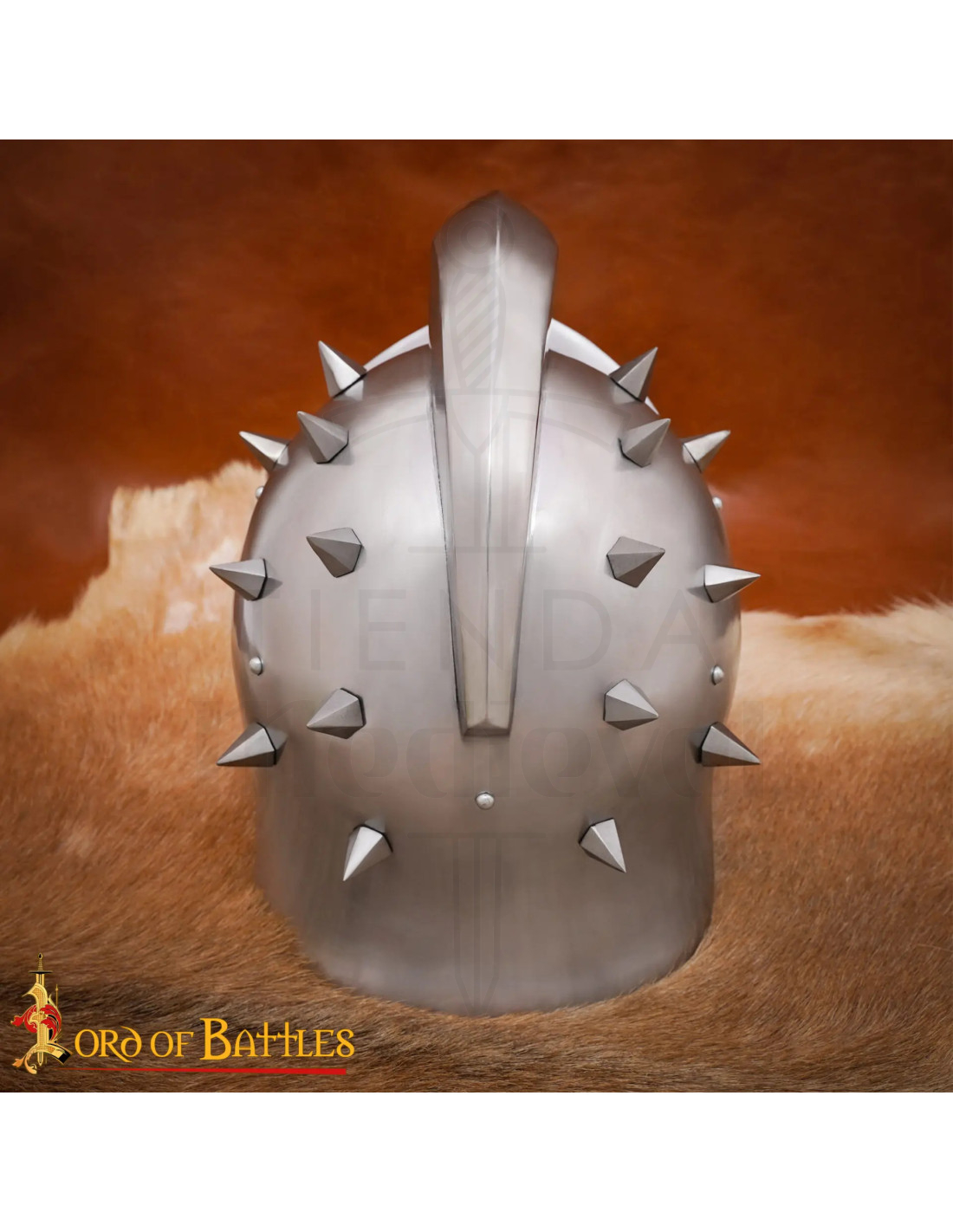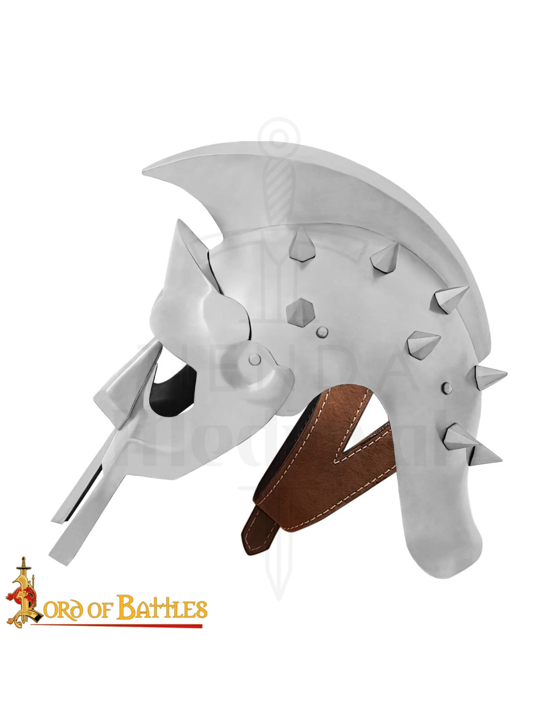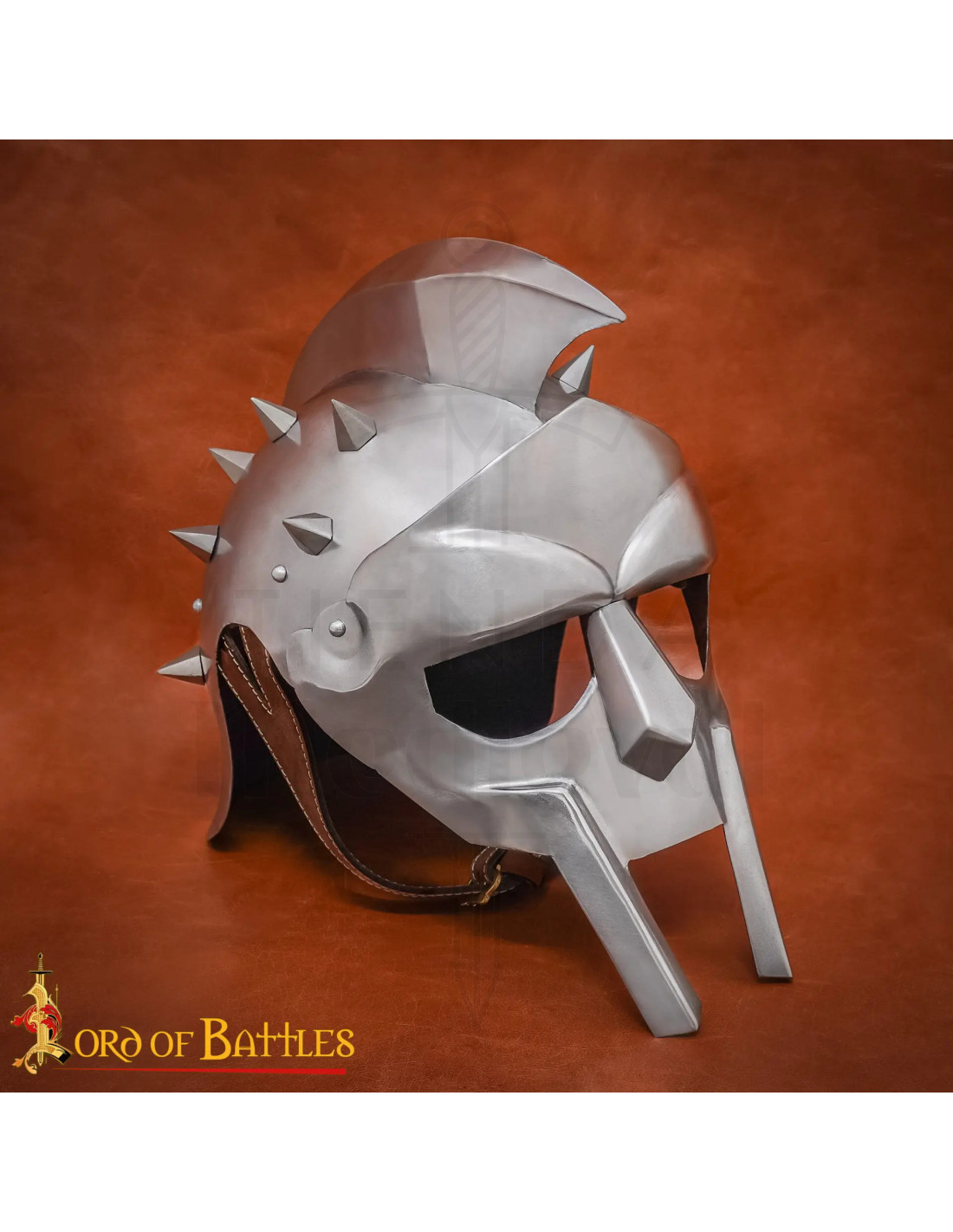 Hergestellt aus hochwertigem Metall mit ausgewogenem Gewicht garantiert er Widerstand und Langlebigkeit, ohne Komfort einzubüßen. Er umfasst ein handgenähtes Lederfutter und ein verstellbares Band, die eine feste und bequeme Passform über Stunden gewährleisten. Die einschüchternden Stacheln und die markante Mähne unterstreichen seinen Charakter und machen ihn zu einer beeindruckenden Wahl für Cosplay, LARP, Schlachtenreproduktionen oder als zentrales Ausstellungsstück in Ihrer römischen Sammlung.