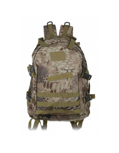 Entdecken Sie den 40-Liter-Nylonrucksack Coyote Phyton Camo! Dieser Barbaric-Rucksack aus widerstandsfähigem 600D-Nylon ist der perfekte Begleiter für Ihre Abenteuer. Mit einem sicheren Verschlusssystem mittels Reißverschlüssen können Sie Ihre Sachen jederzeit schützen.
