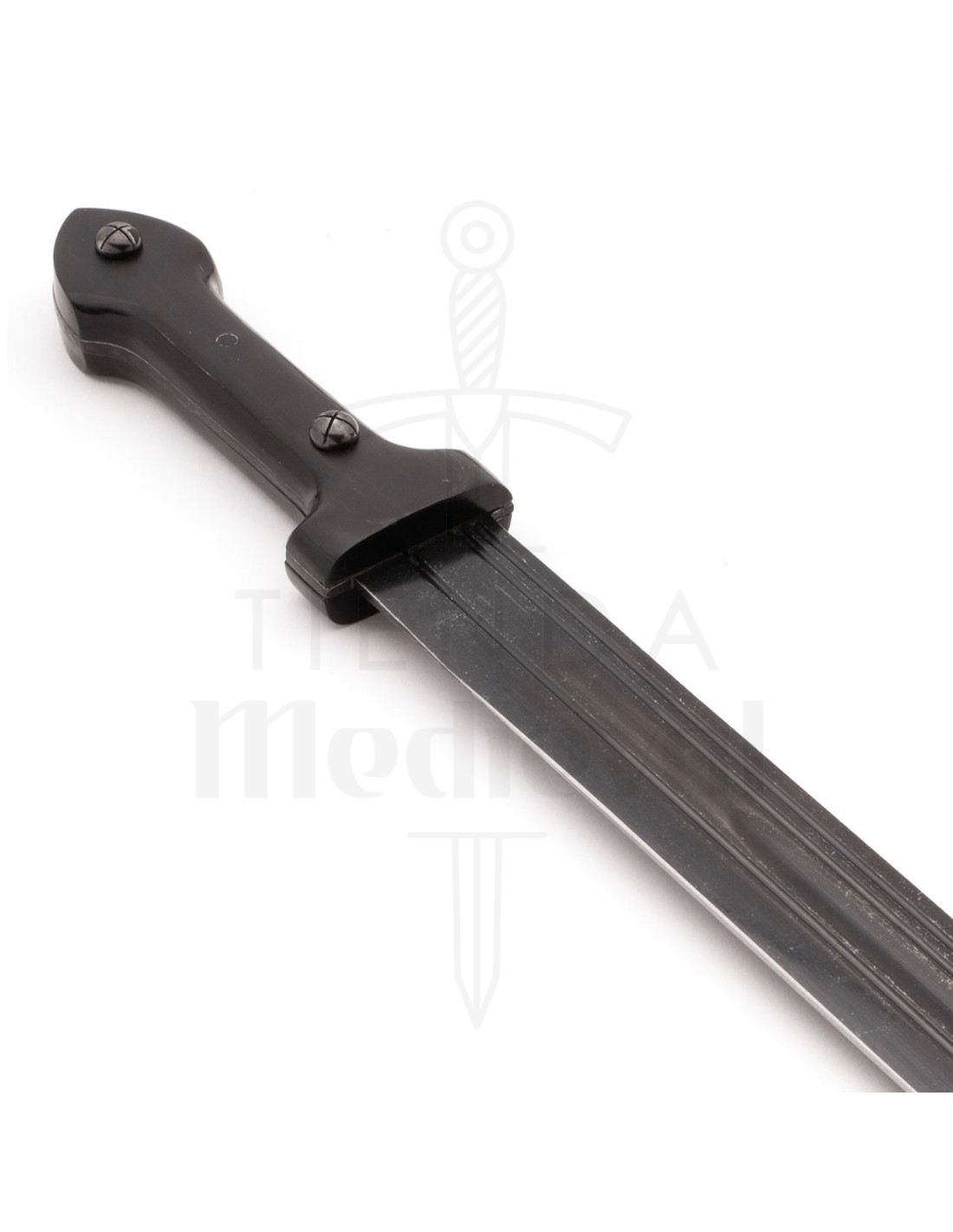Dieses Schwert belebt die militärische Version des Kindjal, ein im Kampf bewährtes Design, das bis Ende des 20. Jahrhunderts für die Streitkräfte angepasst wurde und ein Gefühl von Befehl und Vertrauen vermittelt, wenn man es in der Hand hält. Die dunkle Oberfläche reduziert Reflexionen unter allen Bedingungen, während die scharfe Spitze und die zentrale Nut Leichtigkeit und schnelle Reaktion bei jeder Bewegung bieten, die präzise Manöver erleichtern, ohne Robustheit zu opfern.