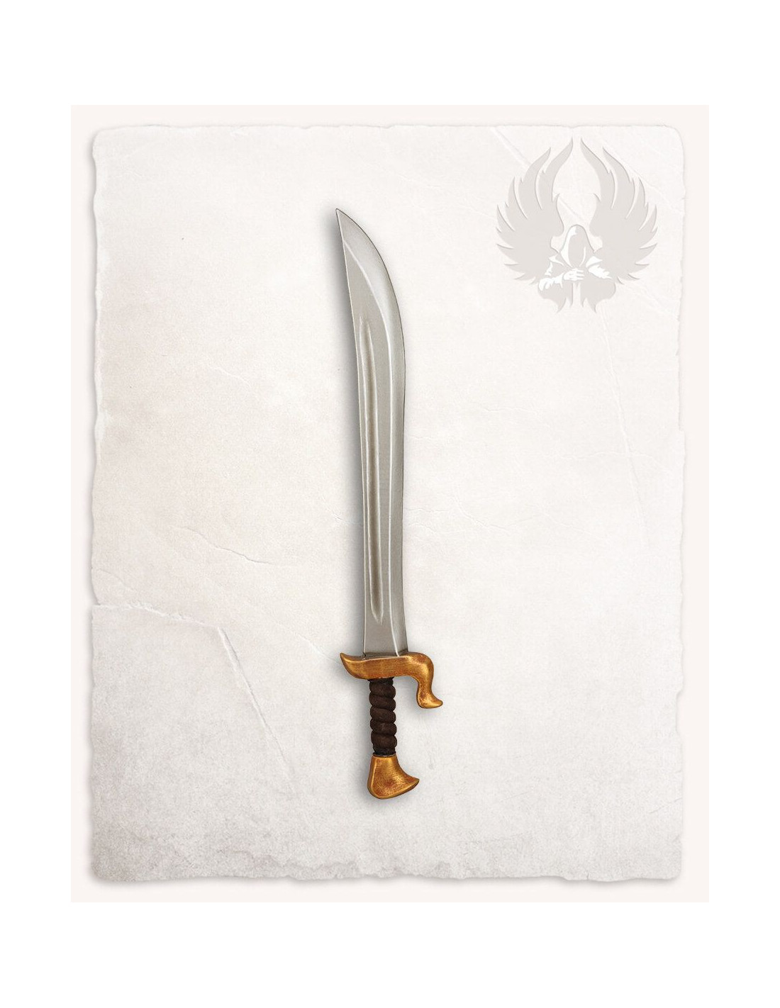 Dieser Griffin-Säbel ist ideal für Darstellungen von Piraten- oder orientalischen Kämpfen in kontrollierten Umgebungen, wie z. B. Live-Rollenspielveranstaltungen und Theateraufführungen. Es bietet ein Gleichgewicht zwischen Realismus und Sicherheit und ist damit eine spannende Wahl für Geschichts- und Fantasy-Enthusiasten. Machen Sie sich bereit, über die Meere zu segeln und aufregende Piratenabenteuer zu erleben!