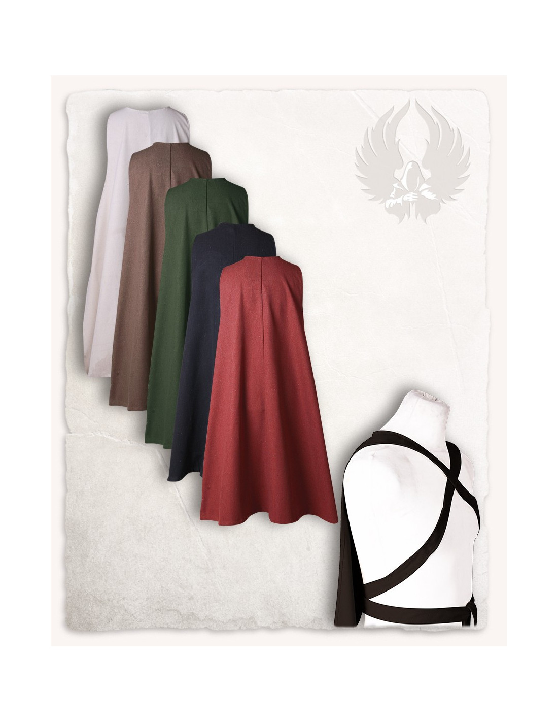 Entdecken Sie das imposante George-Modellwappen in Grün! Obwohl dieser Umhang schlicht ist, zeichnet er sich durch seinen einzigartigen Stil aus. Das Besondere an ihr ist ihre Art, sich zu fesseln. Zwei lange Träger werden über der Brust gekreuzt, hinter den Rücken geführt und um den Bauch gebunden. So bleibt der Umhang auch bei viel Bewegung an Ort und Stelle und drückt nicht im Hals.