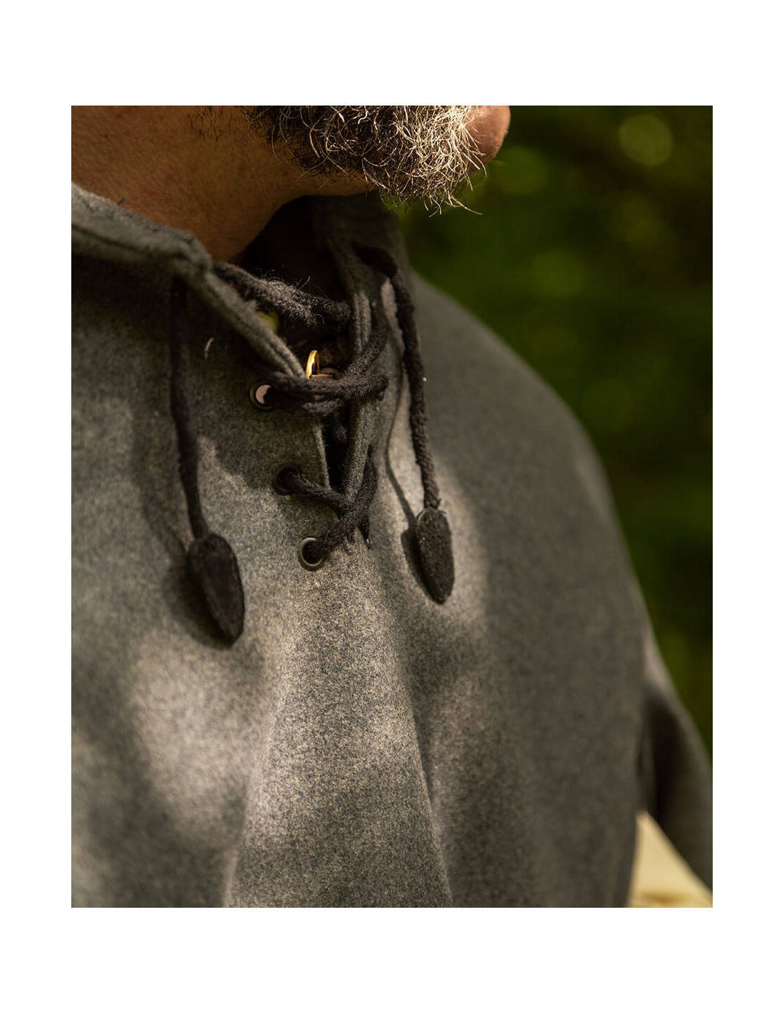 Das großzügige Verdeck schützt vor Sonne, Wind und Regen. Eine kräftige Baumwollkordel schließt den vielseitigen Umhang „Raven“ am Hals. Ob auf Ausflügen, bei der Nachtwache oder auf dem Markt, der Umhang „Rabe“ sorgt immer für ein angenehmes Klima und schenkt Ihnen ein Gefühl des Wohlbefindens.