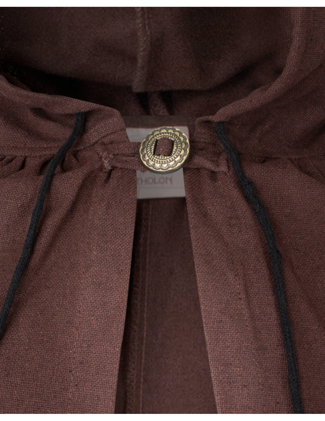 Suchst du nach einem Cape, das Einfachheit und Funktionalität ohne Komplikationen vereint? Das mittelalterliche Baumwollcape 'Aaron' in elegantem Braunton ist genau das, was du brauchst, um dein Outfit stilvoll und praktisch zu vervollständigen.