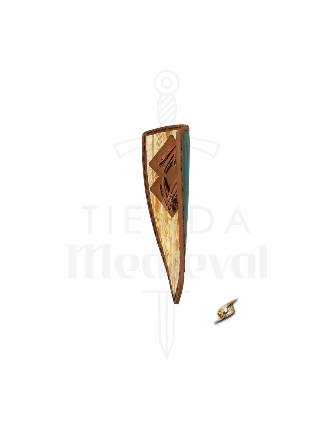 Der Einsatz von zweifarbigen Farben in grünen und roten, oder weißen und roten Bereichen, ermöglicht die Personalisierung und das Zeigen Ihres Abzeichens oder einfach einen Stil, der an der Frontlinie beeindruckt. Ideal für LARP, Cosplay, historische Nachstellungen oder Bühnenkampf – dieser Schild ist die perfekte Wahl für alle, die eine praktische, leichte und optisch beeindruckende Ausrüstung für ihre mittelalterlichen Abenteuer suchen.