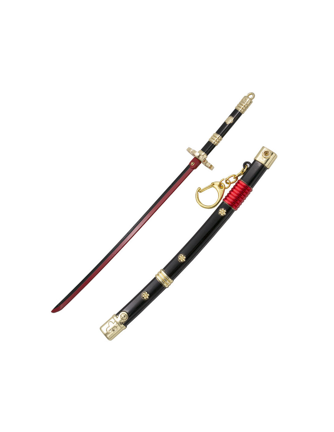 Zoro erhielt Enma während seiner Ausbildung im Land Wano, wo er die Fähigkeiten des Samuraischwerts erlernte und die wahre Stärke seines Schwertes entdeckte. Enmas Bedeutung in der One Piece- Serie liegt in seiner Macht, seiner Verbindung zur Geschichte und der Entwicklung von Zoros Charakter. Wenn Sie ein One Piece-Fan sind, ist das Hinzufügen von Zoros Enma Katana-Schlüsselanhänger zu Ihrer Sammlung eine perfekte Möglichkeit, Ihre Liebe für die Serie und Zoros Charakter zu zeigen.