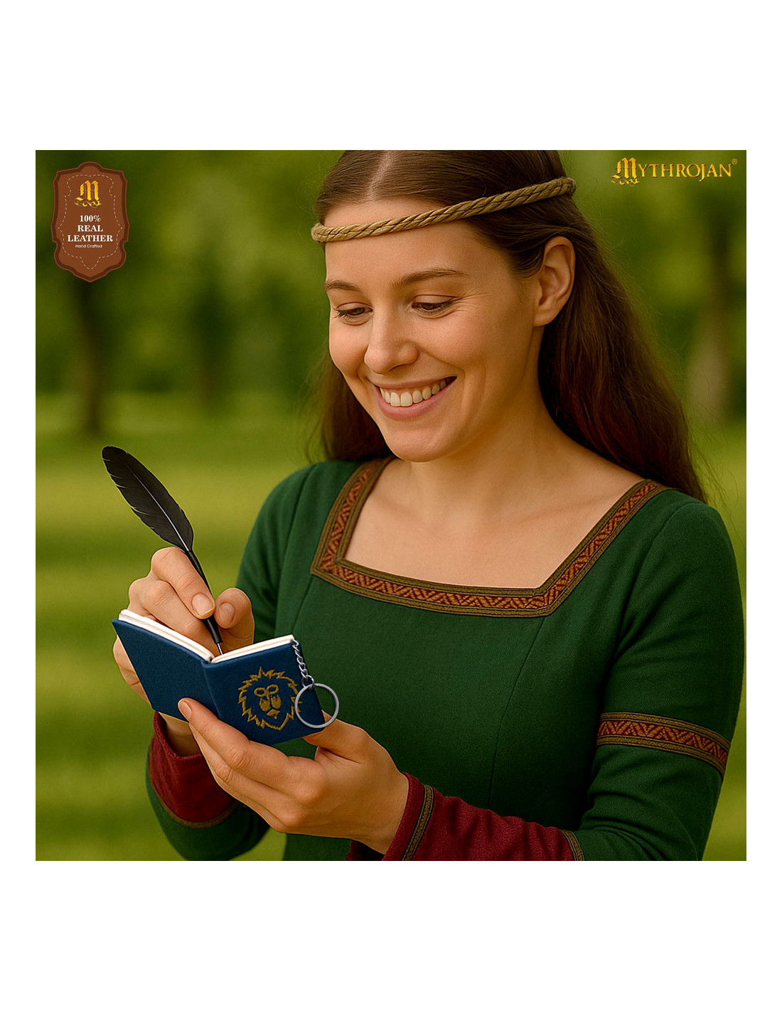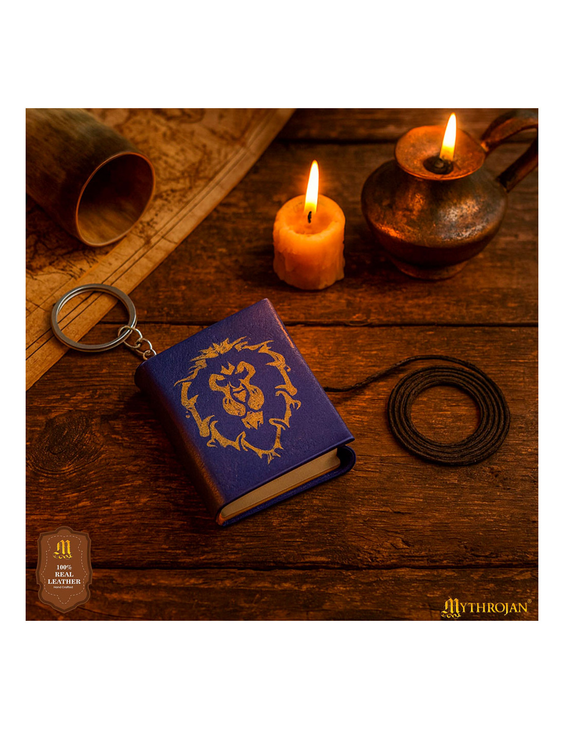Dieses kleine Relikt macht eine alltägliche Geste zu einer Aussage: Der dunkelblaue Lederoptikdeckel mit Textur und das goldene Löwen-Relief zeigen Ihr Engagement für die Allianz stilvoll, während der silberne Metallring das Mitnehmen erleichtert. Mehr als nur Schmuckstück ist es ein echtes Notizbuch mit weißen Seiten, bereit, schnelle Ideen, Charakterstatistiken, Kampagnennotizen oder Zitate festzuhalten, die Sie bewahren möchten.