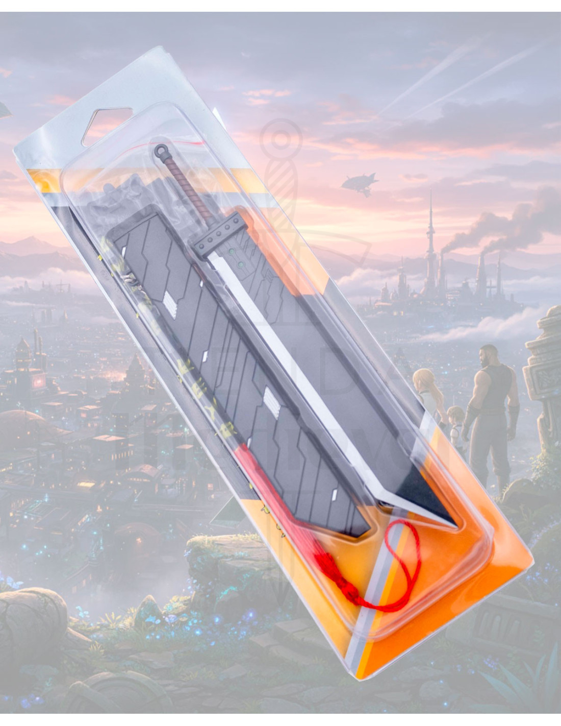 Stellen Sie sich vor, Sie tragen ein Stück des epischen Universums von Final Fantasy an Ihrem Schlüsselbund, das Ihren Schlüsseln eine überraschende und stilvolle Wendung verleiht. Dieses Accessoire fängt eine moderne und kantige Ästhetik ein, mit einer Klinge mit metallischem Finish und Reliefs, die ein technisches Muster hervorrufen, und einem Griff, der eine geflochtene Griffstruktur imitiert, um ein authentisches Gefühl zu vermitteln.