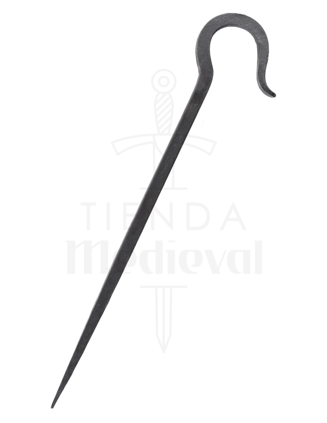 Mit einer Länge von etwa 34 cm bieten sie die ideale Tiefe, um Ihr Zelt fest zu verankern, ohne den Boden zu beschädigen. Außerdem verleihen die Textur und das dunkle Finish des Metalls nicht nur eine rustikale Ästhetik, die an alte Techniken erinnert, sondern bieten auch eine höhere Widerstandsfähigkeit gegen Witterungseinflüsse. Kleine Details wie Rostakzente unterstreichen ihre handwerkliche Authentizität – perfekt für Reenactment-Enthusiasten oder Liebhaber traditionellen Campings.
