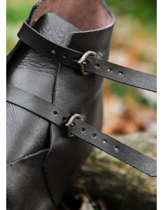 Hohe mittelalterliche Stiefel mit Schnallenverschluss, braun