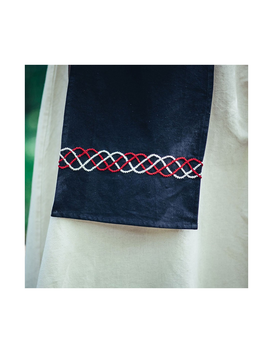 Entdecken Sie die schwarze Wikinger-Schürze von Bua! Diese Schürze ist perfekt für alle, die einen einzigartigen und originellen Stil in der Küche suchen. Mit ihrer rot-weißen Stickerei versetzt Sie diese Schürze in die Wikingerzeit.