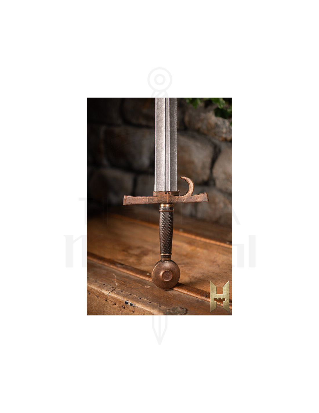 Suchen Sie ein Schwert, das klassische Eleganz mit moderner Haltbarkeit für Ihre LARP-Abenteuer verbindet? Dieses Milanese-Modell aus der Stronghold Masters Series ist die perfekte Wahl für diejenigen, die Präzision, Widerstandsfähigkeit und ein raffiniertes Design schätzen. Inspiriert von den Schwertern Norditaliens vermittelt sein Bronze-Finish einen authentischen mittelalterlichen Touch, ideal für Charaktere, die im Kampf mit Stil und Zuverlässigkeit hervorstechen möchten.