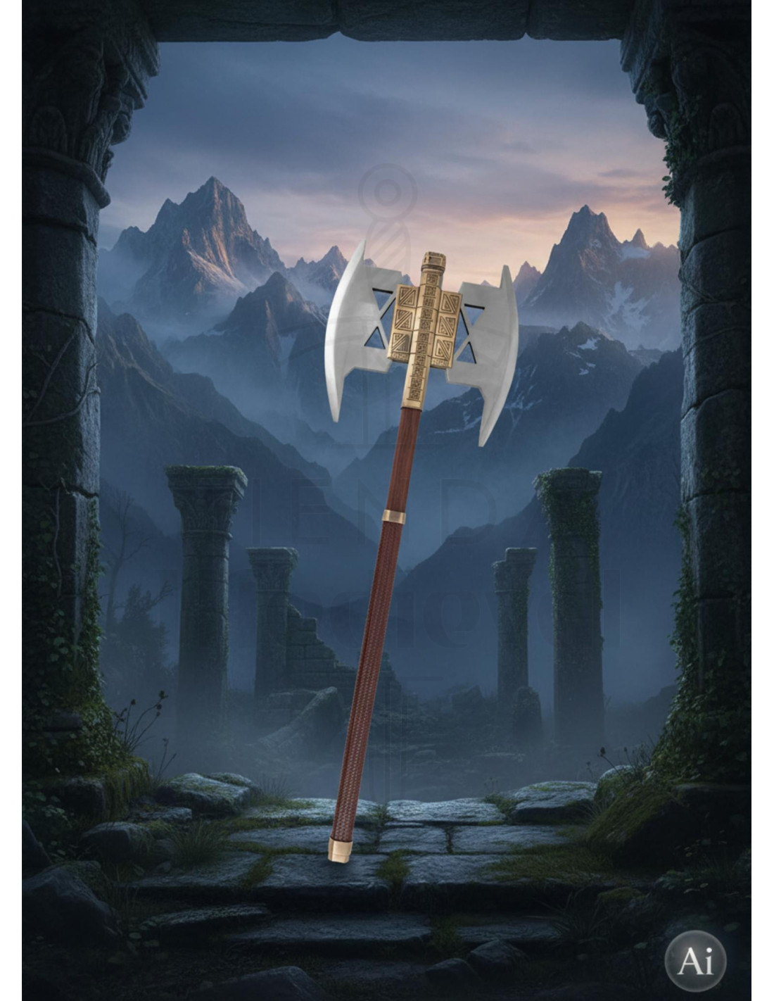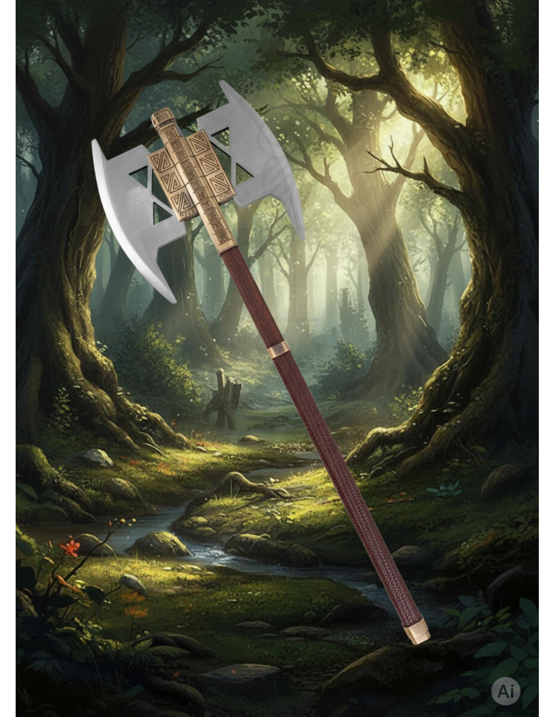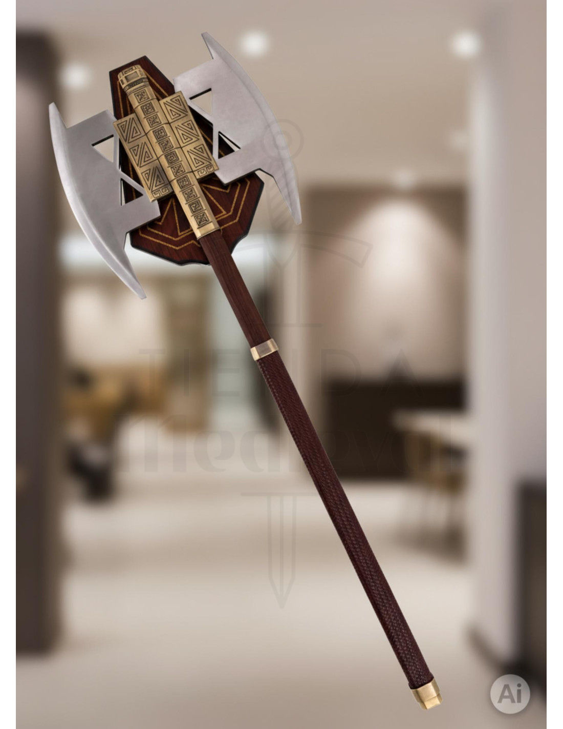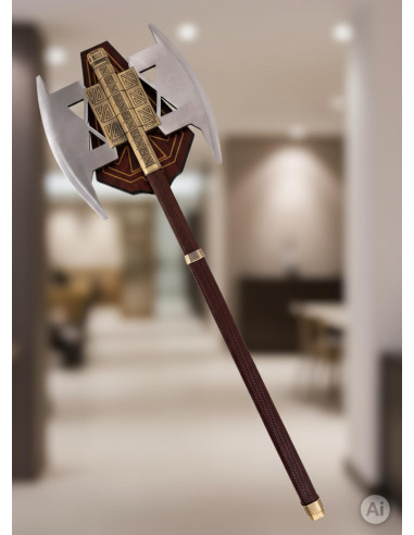 Dieses Stück, neben seinem dekorativen Wert, wird mit einem enthaltenen Ständer geliefert, der die Präsentation erleichtert und die visuelle Wirkung verstärkt. Mit einem Gewicht von 4476 g sorgt es für ein solides und hochwertiges Gefühl – ideal für Sammler und Fans der Saga, die ihre Umgebung mit einem mittelalterlichen und fantastischen Akzent ergänzen möchten. Obwohl sie nicht offiziell lizenziert ist, erinnern das Finish und der Stil an die Abenteuer und Schlachten des Tolkien-Universums, was diese Axt zu einem einzigartigen Dekorations-, Cosplay- oder Themen-Geschenk macht.