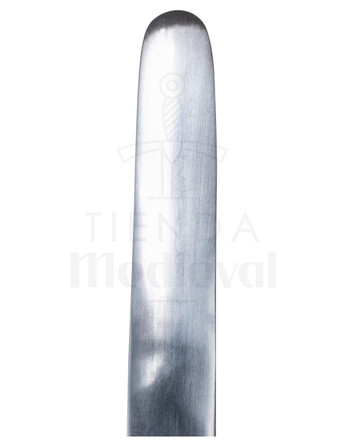 Sein klassisches und funktionales Design kombiniert eine lange, gerade Klinge mit einem polierten Finish, das das Licht reflektiert, und einen Griff, der sich dank seiner Reliefstruktur perfekt an deine Hand anpasst, sodass du auch bei langen Trainingseinheiten oder Bühnenauftritten einen sicheren und bequemen Halt hast. Das Kreuz am Knauf und die silberne Beschichtung am Querstück verleihen ihm den charakteristischen Touch, der an die mittelalterliche Geschichte erinnert, während die robuste Stahlkonstruktion Langlebigkeit und Widerstandsfähigkeit für Training und kontrollierte Kämpfe garantiert.