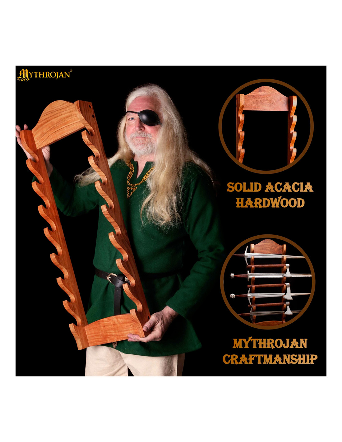 Verpassen Sie nicht die Gelegenheit, Ihre Schwertsammlung auf sichere und auffällige Weise zu präsentieren. Sichern Sie sich jetzt die hölzerne Wandhalterung Mythrojan und verwandeln Sie Ihre Schwerter in wahre Kunstwerke.
