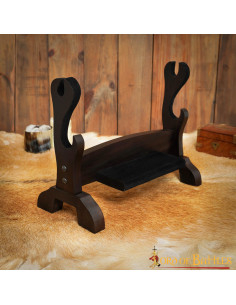 Dieser aus echtem Hartholz handgefertigte Ständer ist mit weichem, flexiblem Samt überzogen, der Ihre Waffen vor der Härte des Holzes schützt. Mit Abmessungen von ca. 36,5 cm Länge und 28,2 cm Höhe ist dieser Ständer ideal für Ihre Wikinger-, mittelalterlichen oder spätmittelalterlichen Äxte und Schwerter.